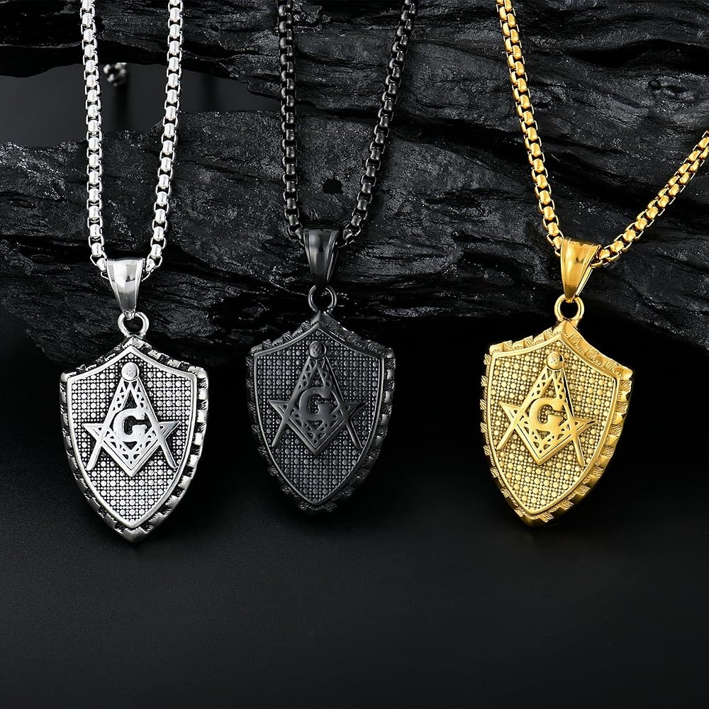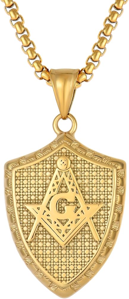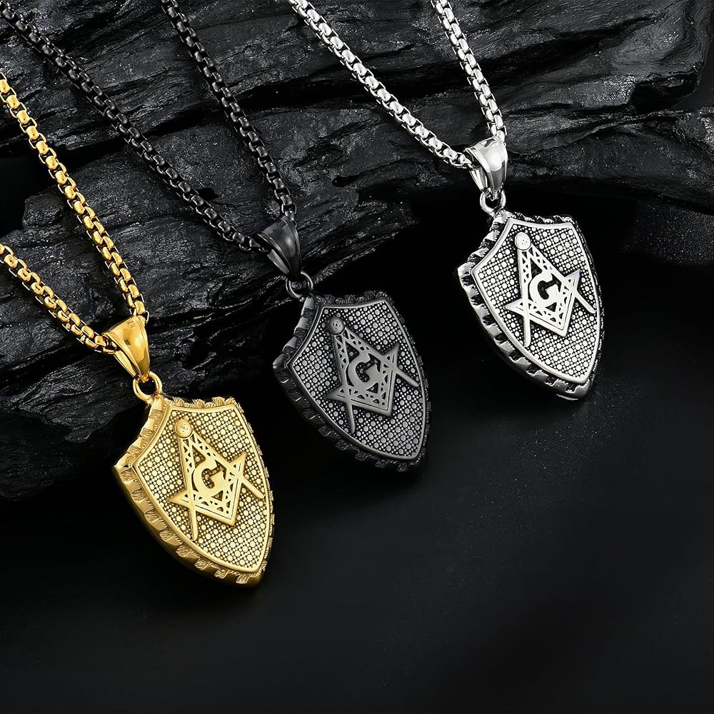 قلادة ماسونية شيلد من الفولاذ المقاوم للصدأ للرجال، مع سلسلة رولو مقاس 60.96 سم