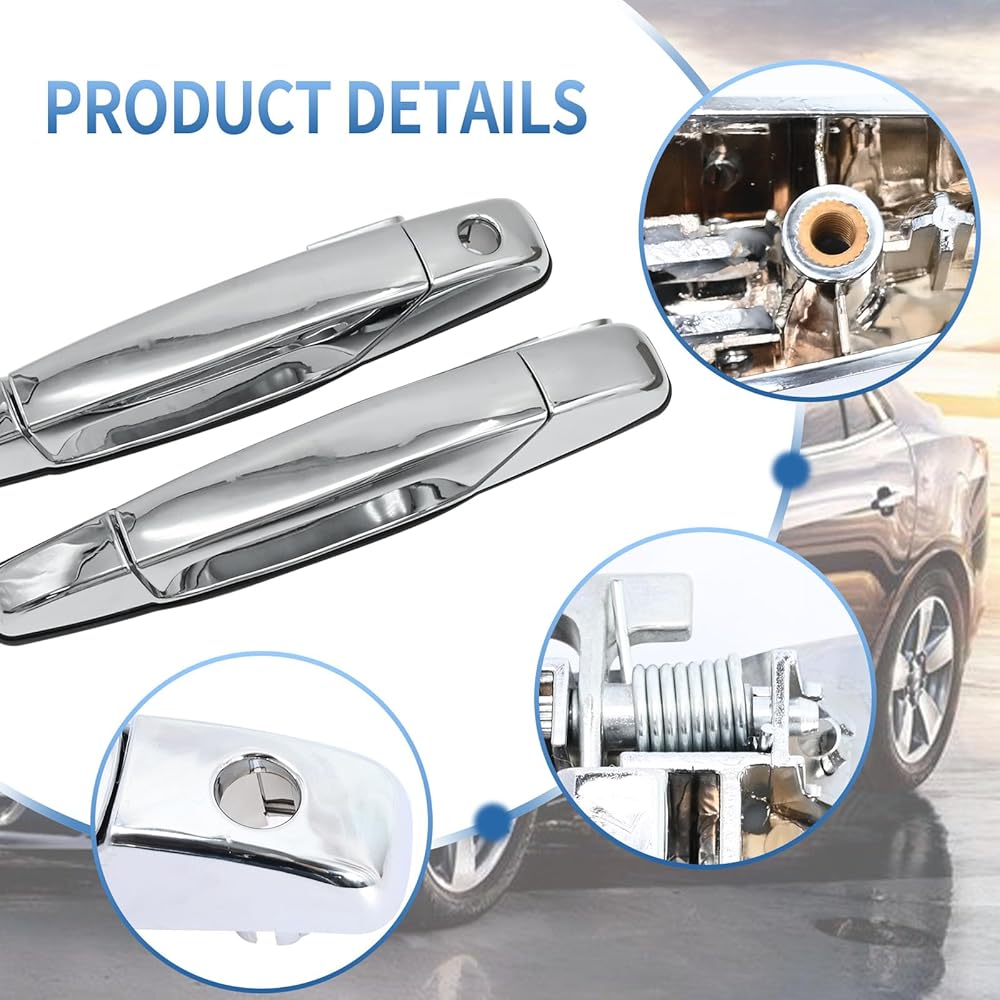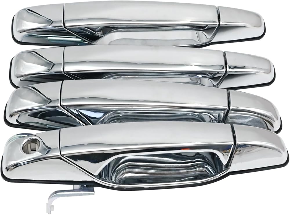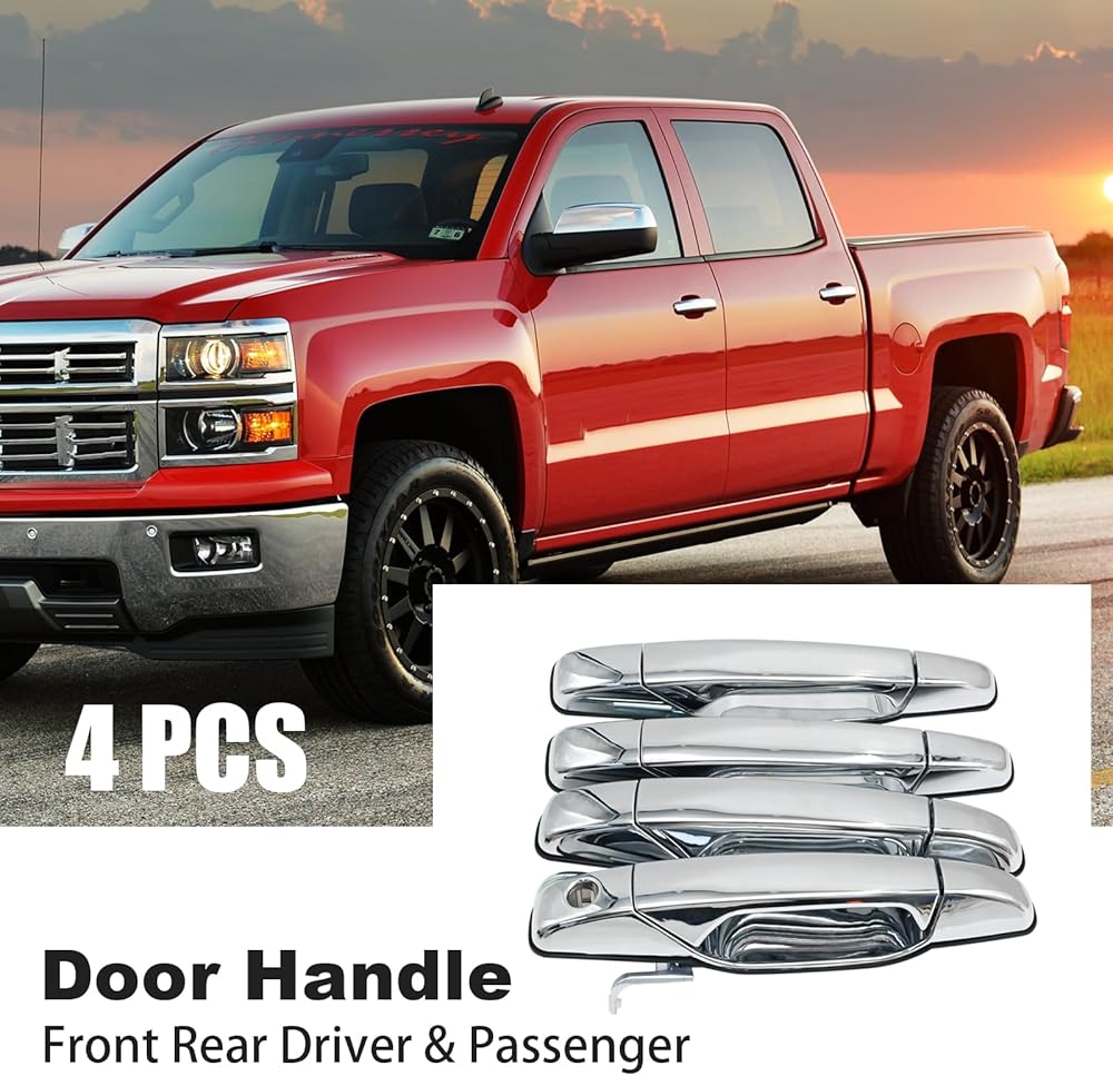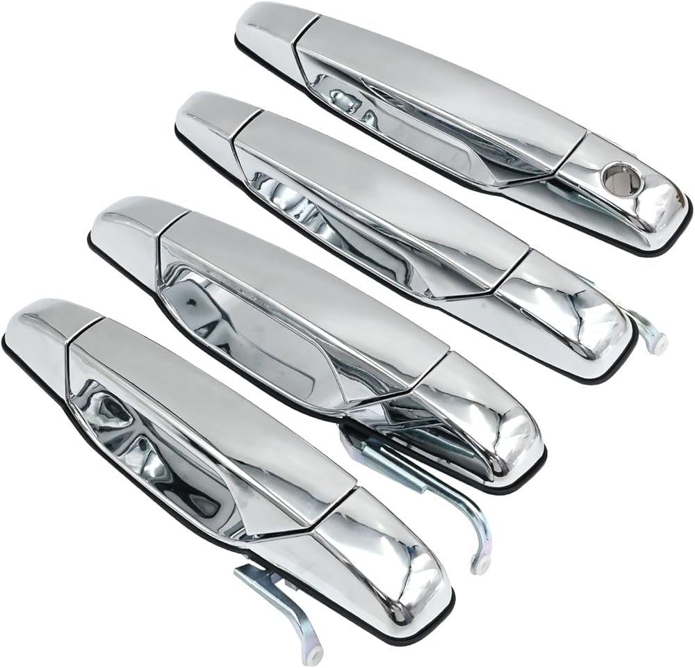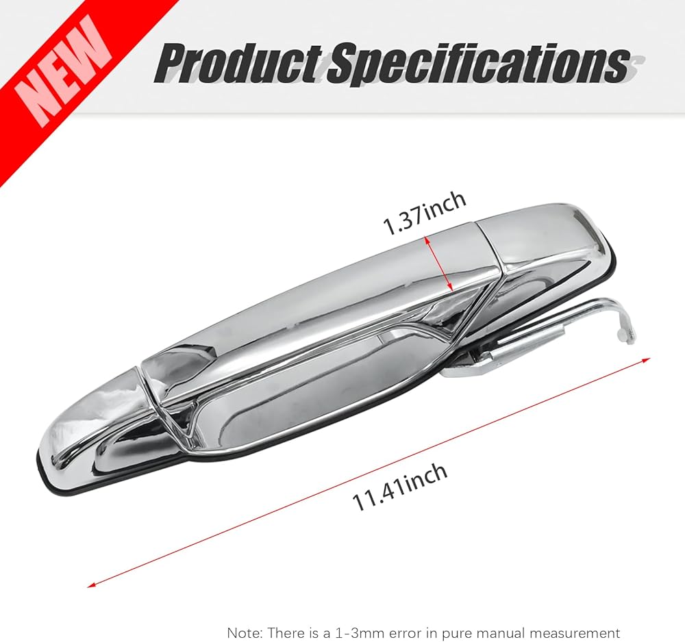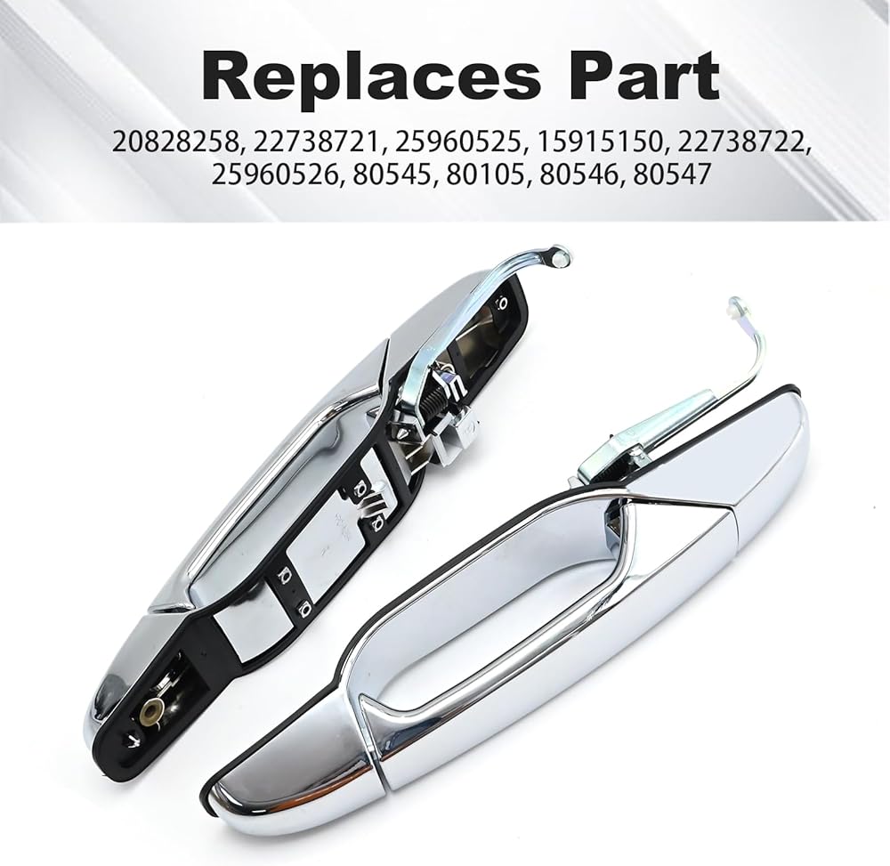 • Fitment: This Chrome Exterior Door Handle set is replacement for Cadillac Escalade 2007-2014, ESV 2007-2014, EXT 2007-2013; replacement for Chevy Avalanche 2007-2013, Silverado 1500 2007-2013, Silverado 2500 HD 2007-2014; replacement for GMC Sierra 1500 2007-2013, Sierra 2500 HD 2007-2014. More compatible model can also be found in product description.
