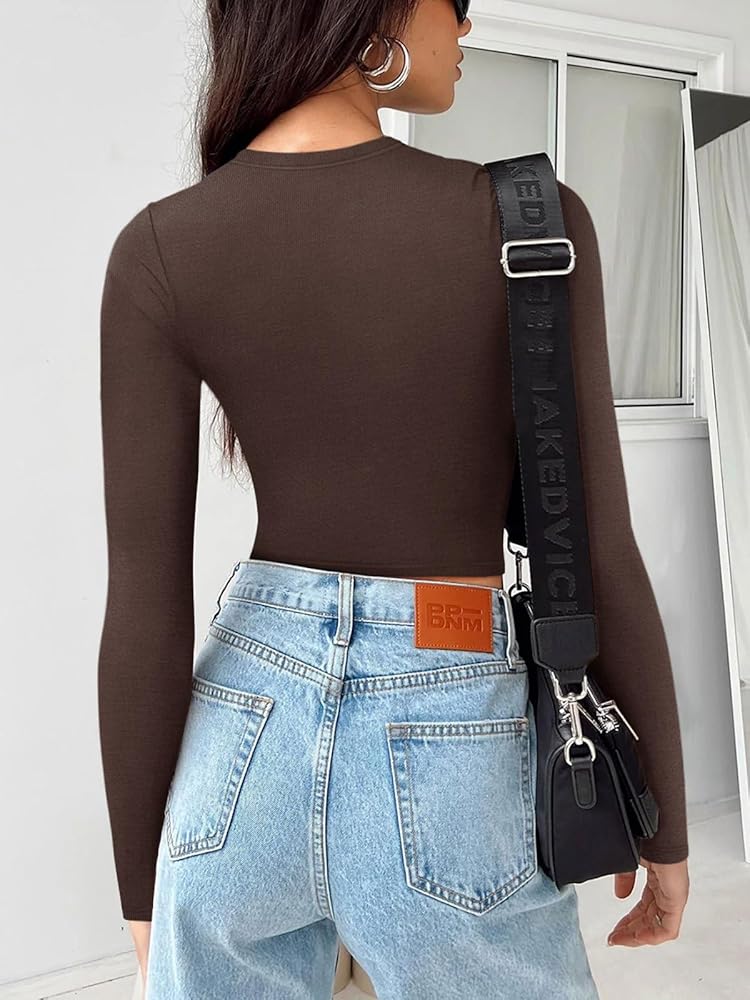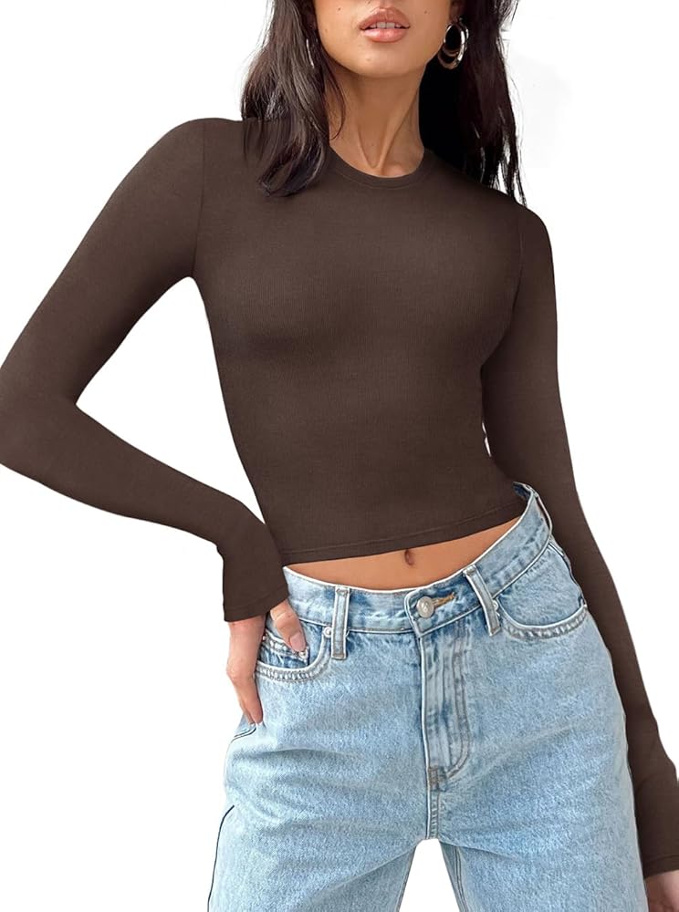 ملابس أنيقة: هذه التي شيرتات الأساسية ذات الأكمام الطويلة للنساء أو الفتيات المراهقات هي ملابس الخريف الرائعة. لطيفة للغاية ويمكن ارتداؤها مع أي شيء تقريبًا، مثل السراويل عالية الخصر والسراويل القصيرة والتنانير والجينز، ويمكن أيضًا ارتداؤها تحت سترة أو سترات .