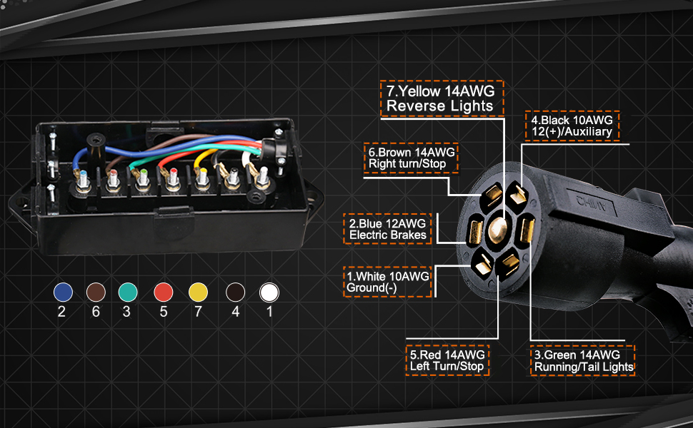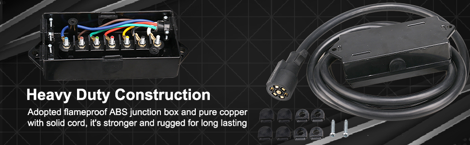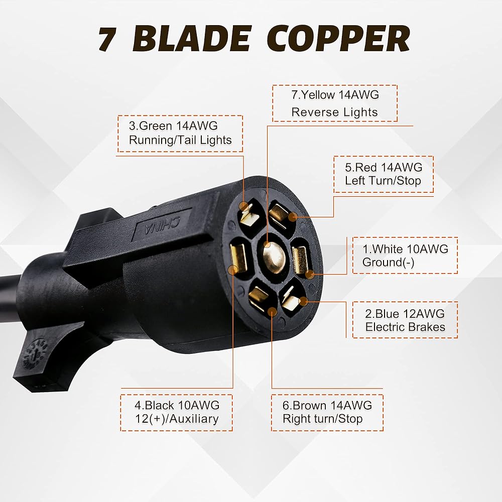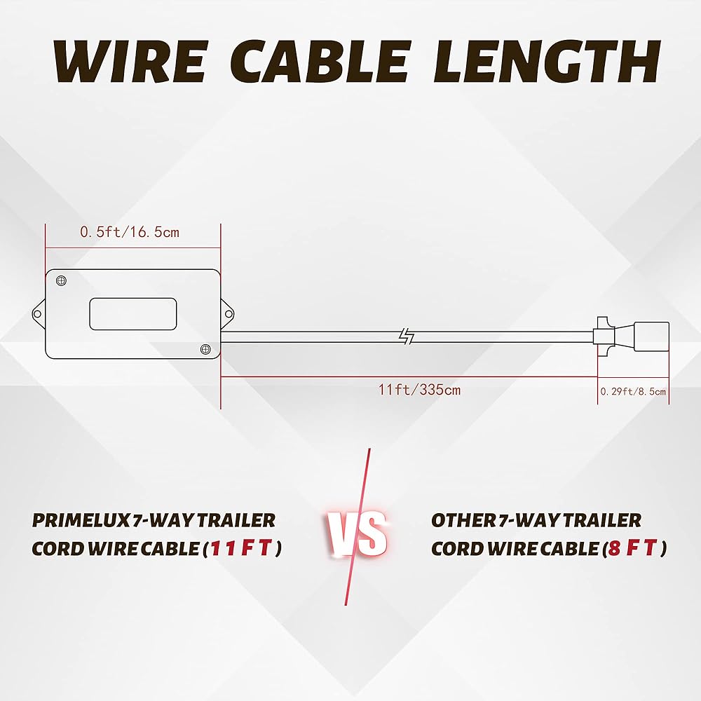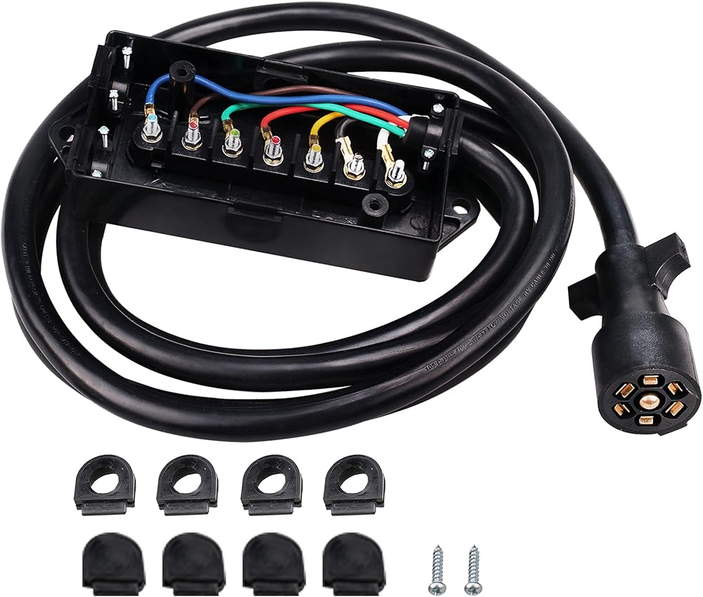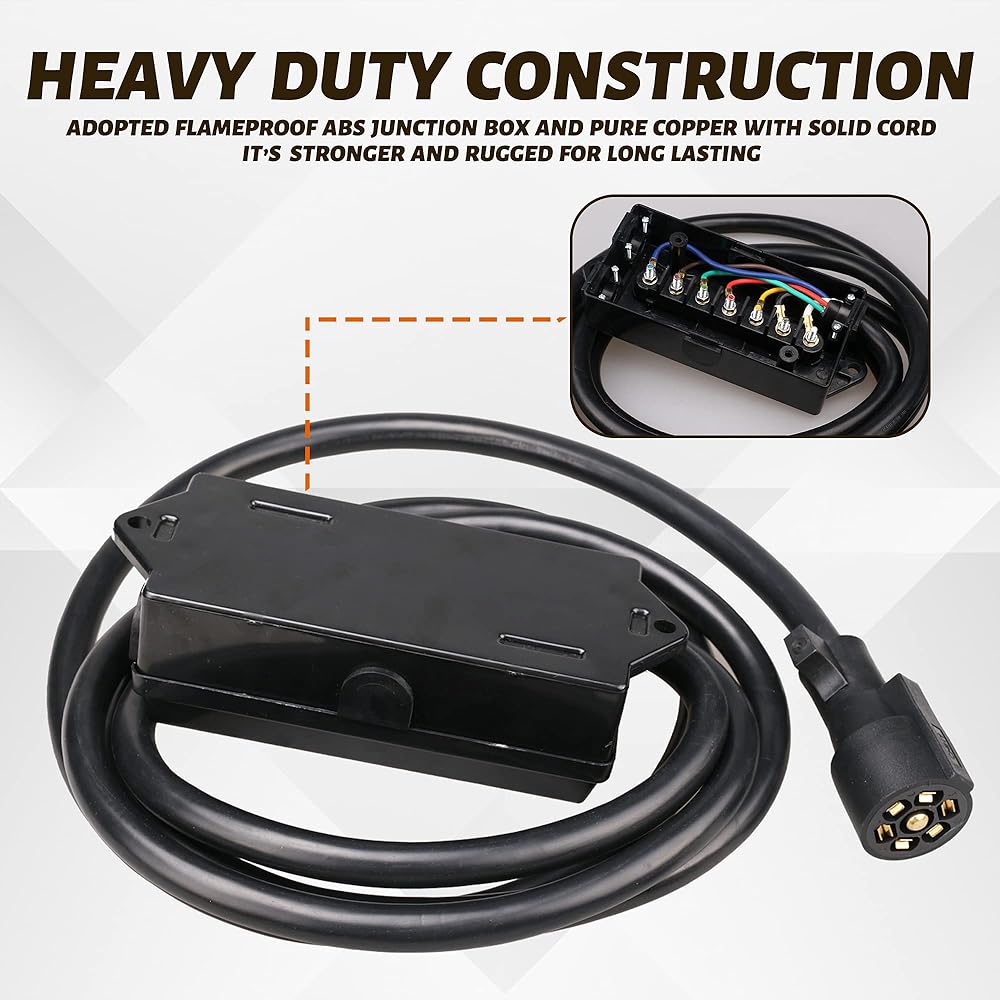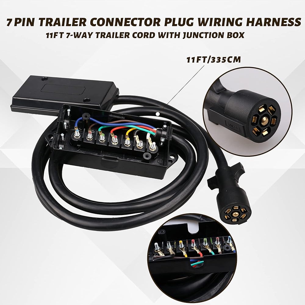سلك مقطورة بطول 11 قدمًا بـ 7 اتجاهات مع صندوق توصيل - حزام أسلاك توصيل موصل مقطورة ذو 7 سنون - كابل سلك نحاسي ذو 7 شفرات للمركبات الترفيهية والمعسكرات والمقطورات ومركبات السحب (11 قدمًا مع صندوق التوصيل)