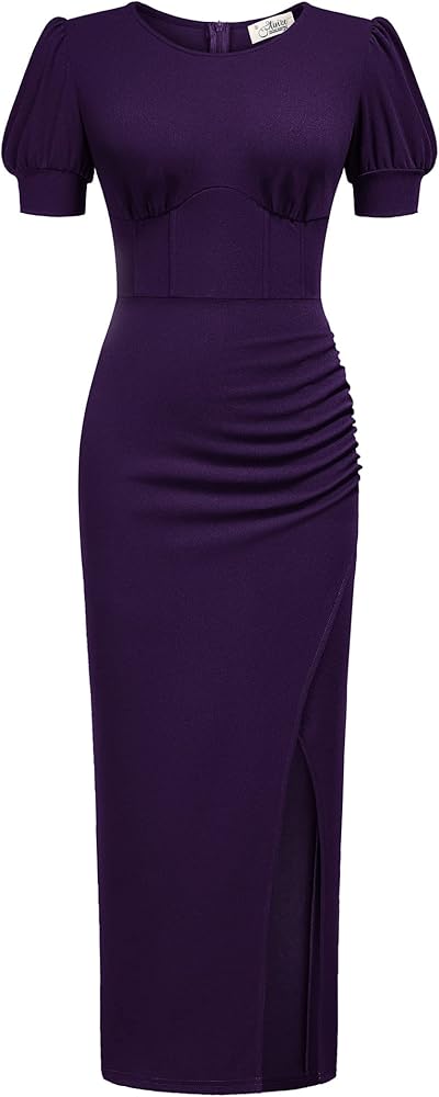 الميزات: يتميز بأكمام منتفخة وخصر عالي وتصميم ملفوف مع زخرفة مطوية في الأسفل. يعمل قسم الخصر عند الصدرية والشق في الأسفل على تلميع شكل الجسم وتزيين ساقيك، مما يمنحك توازنًا جيدًا في الشكل.