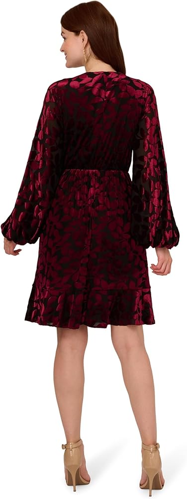 Shimmering elegance in every step! Elevate your style with the Adrianna Papell Velvet Burnout Short Dress, a luxe piece that shines for any occasion. Featuring a chic above-the-knee blouson silhouette and a flattering V-neck, this faux wrap dress boa