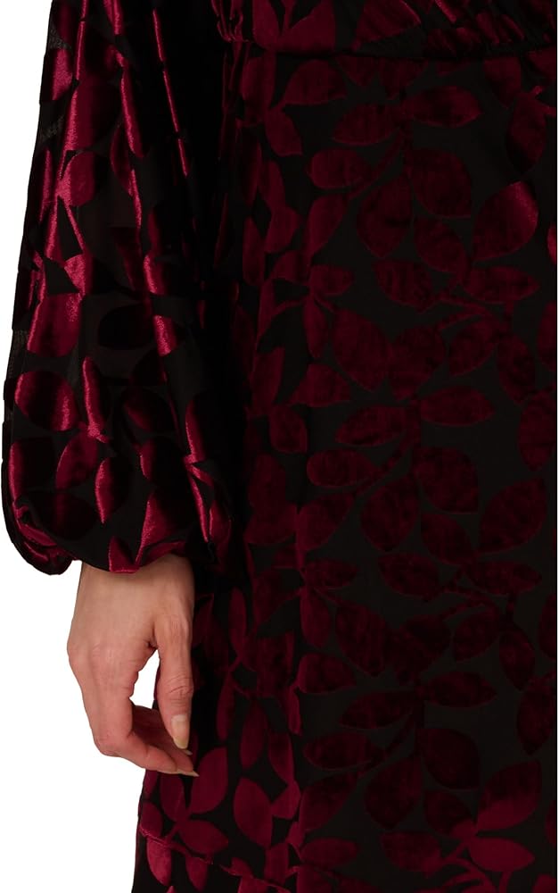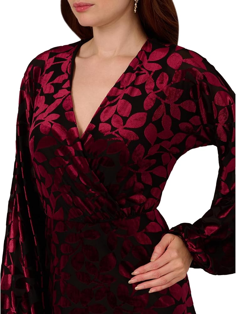 Shimmering elegance in every step! Elevate your style with the Adrianna Papell Velvet Burnout Short Dress, a luxe piece that shines for any occasion. Featuring a chic above-the-knee blouson silhouette and a flattering V-neck, this faux wrap dress boasts rich details like long bishop sleeves, a surplice bodice, and a soft flounce hem. Crafted from sumptuous burnout velvet with a floral-like design, it offers an elastic waist and a convenient pull-on style. 49% nylon, 40% polyester, 11% elastane. Dry-clean. Imported,