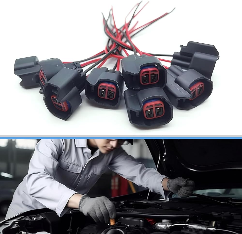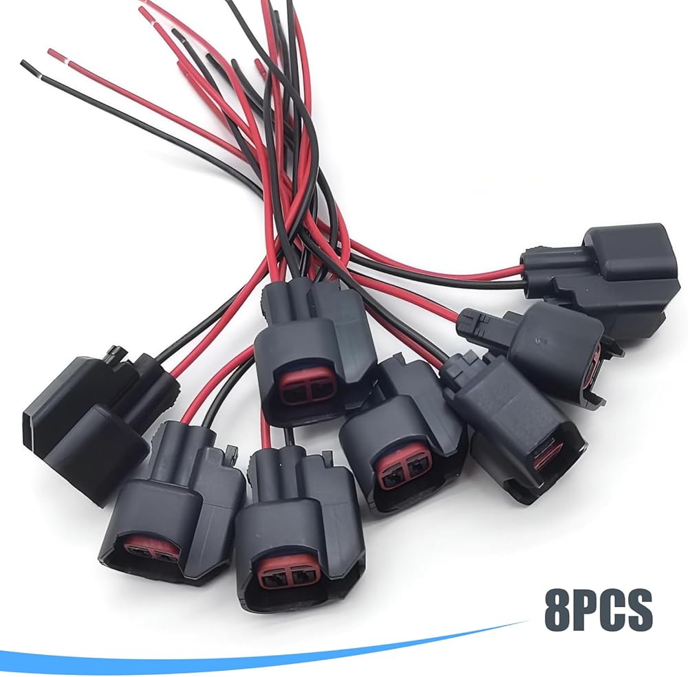 Nomocale 8 PCS Car Fuel Injector Plug, EV6 Harness Socket Connector, Waterproof and Flame Retardant Fuel Injector Replacement, Compatible with Buick Cadillac Chevrolet Chrysler Dodge Ford (Black)