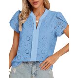 ميزة فريدة: تتميز القمصان النسائية الكاجوال الأنيقة بفتحات مجوفة ساحرة، ورقبة على شكل حرف V، وأكمام بتلات، ولون ثابت، ومقاس فضفاض، ونمط لطيف وأنيق، مما يمنحك مظهرًا أنيقًا وعصريًا عند ارتدائه. سوف تعشقين الأكمام ذات البتلة، وهي أنثوية للغاية. يعد Henley V-Neck المكان الأكثر أناقة. كلا عارضة وأنيق. يمكنك ارتداؤه للعمل أو التسوق.