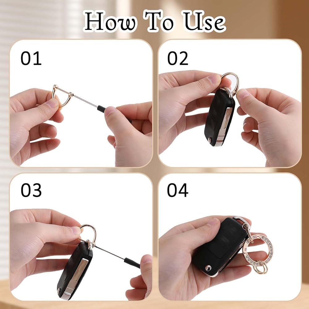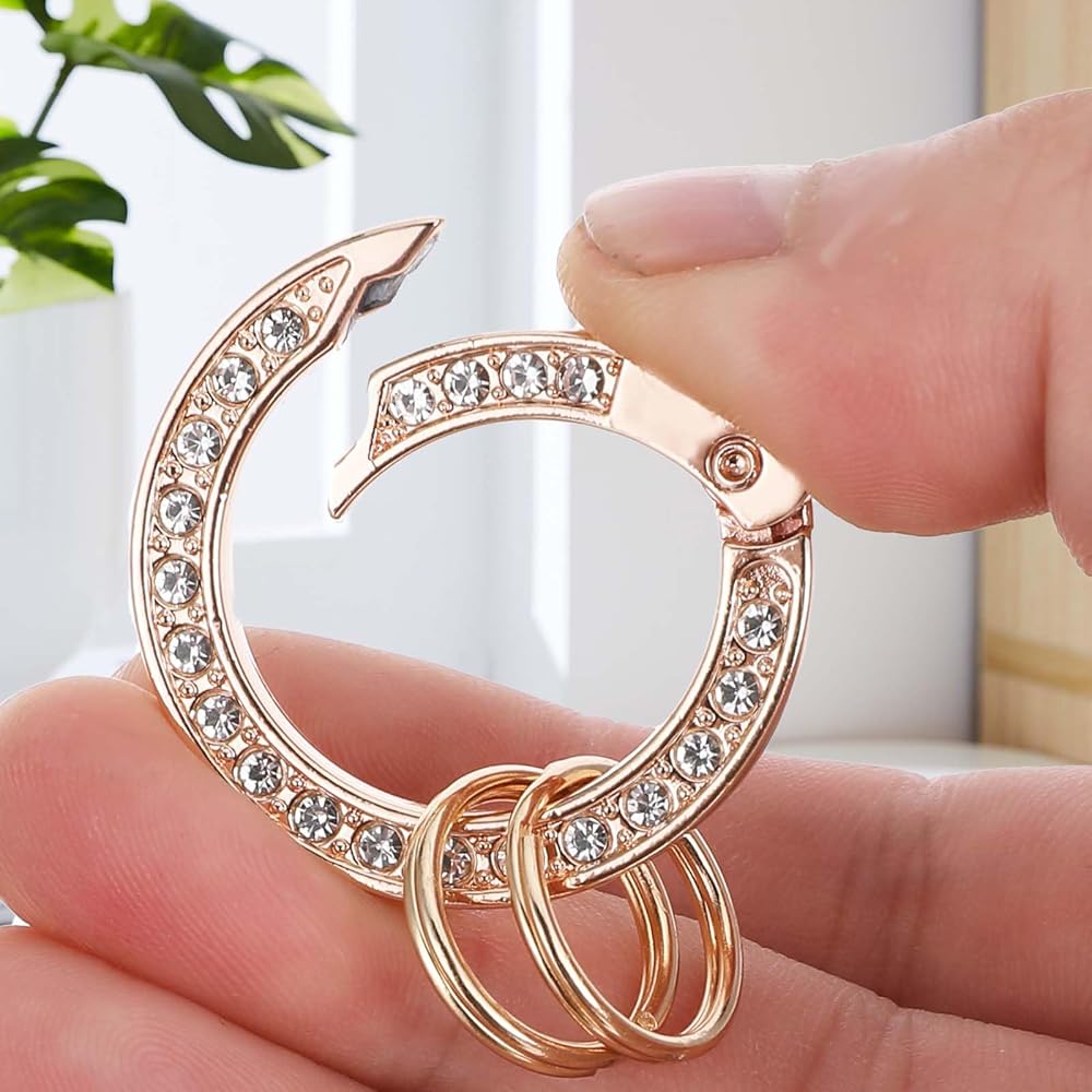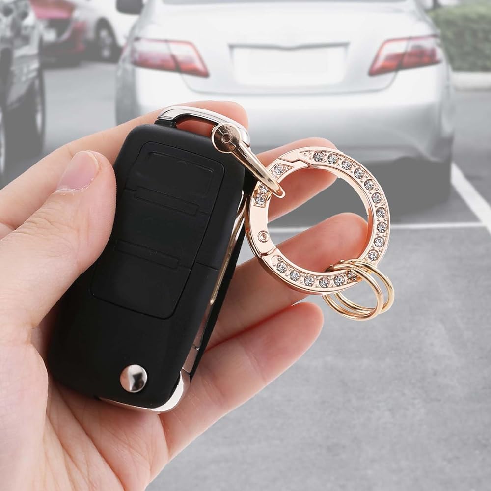 تصميم لامع: تتميز سلسلة المفاتيح اللامعة بأحجار الراين عالية السطوع التي تتألق في الشمس، مما يجعلها إكسسوارًا رائعًا لمفاتيحك أو حقائبك أو محفظتك. يضيف التصميم الرائع لمسة من الأناقة والسحر إلى أغراضك اليومية.