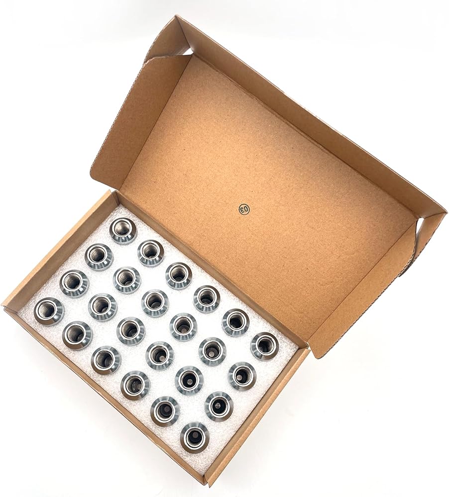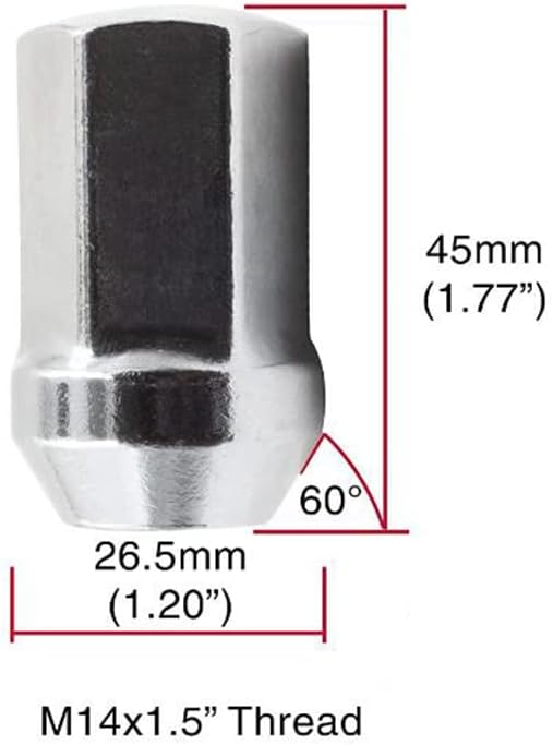 24 قطعة 14 × 1.5 صواميل عروة OEM 1.75 بوصة (45 مم) ارتفاع 7/8 بوصة سداسية (22 مم)، M14X1.5 قطعة واحدة بتصميم مصنع من الكروم متوافقة مع Chevy Silverado Tahoe GMC Sierra 1500 Buick Cadillac Chrysler