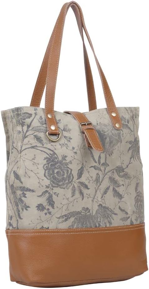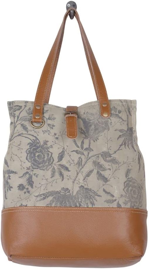 This beautiful tote bag is perfect for everyday use. Made of premium leather and high-quality canvas, this bag is built to last, with strap for convenience. This stylish canvas bag is the perfect accessory for every woman. It has a secure and durable design that makes it the perfect bag for work or travel. Made from quality material, this unique bag follows a specific process in the creation of upcycled canvas purses. Carry it anywhere and ensures that both the functionality and style of each piece. Each item is carefully hand-crafted and has their own unique characteristic due to the various recycled yet durable materials used in creating these masterpieces. Dimensions: Item Width 16.5in, Item Height 15.5in, Item Depth 4in, Handle 10in