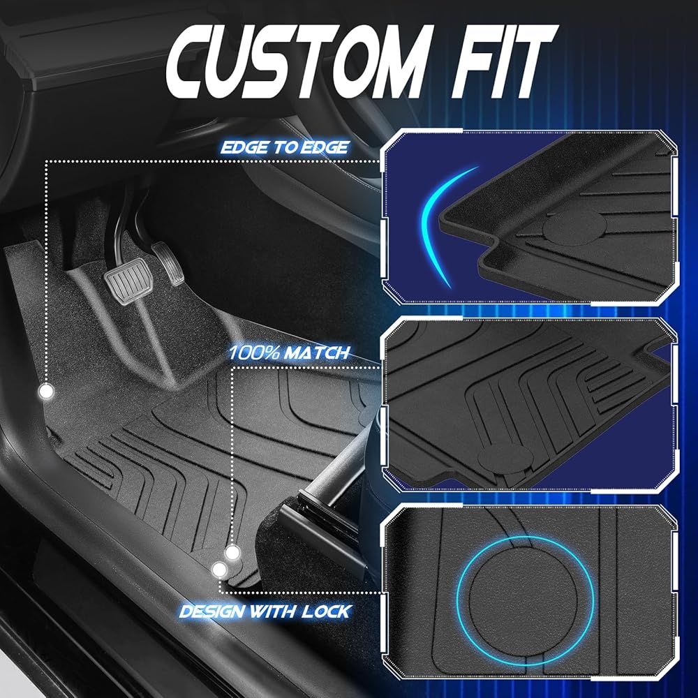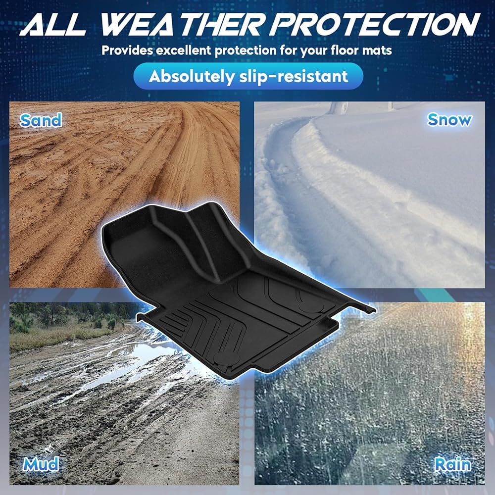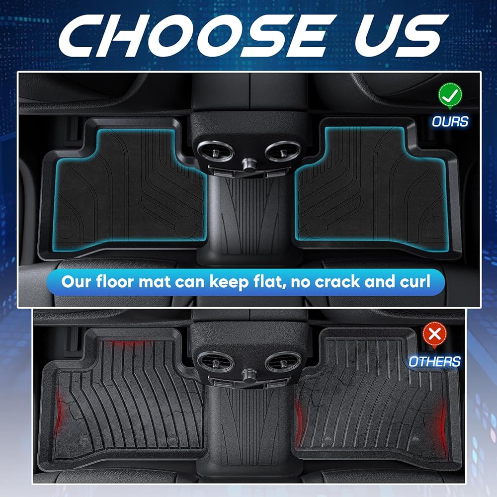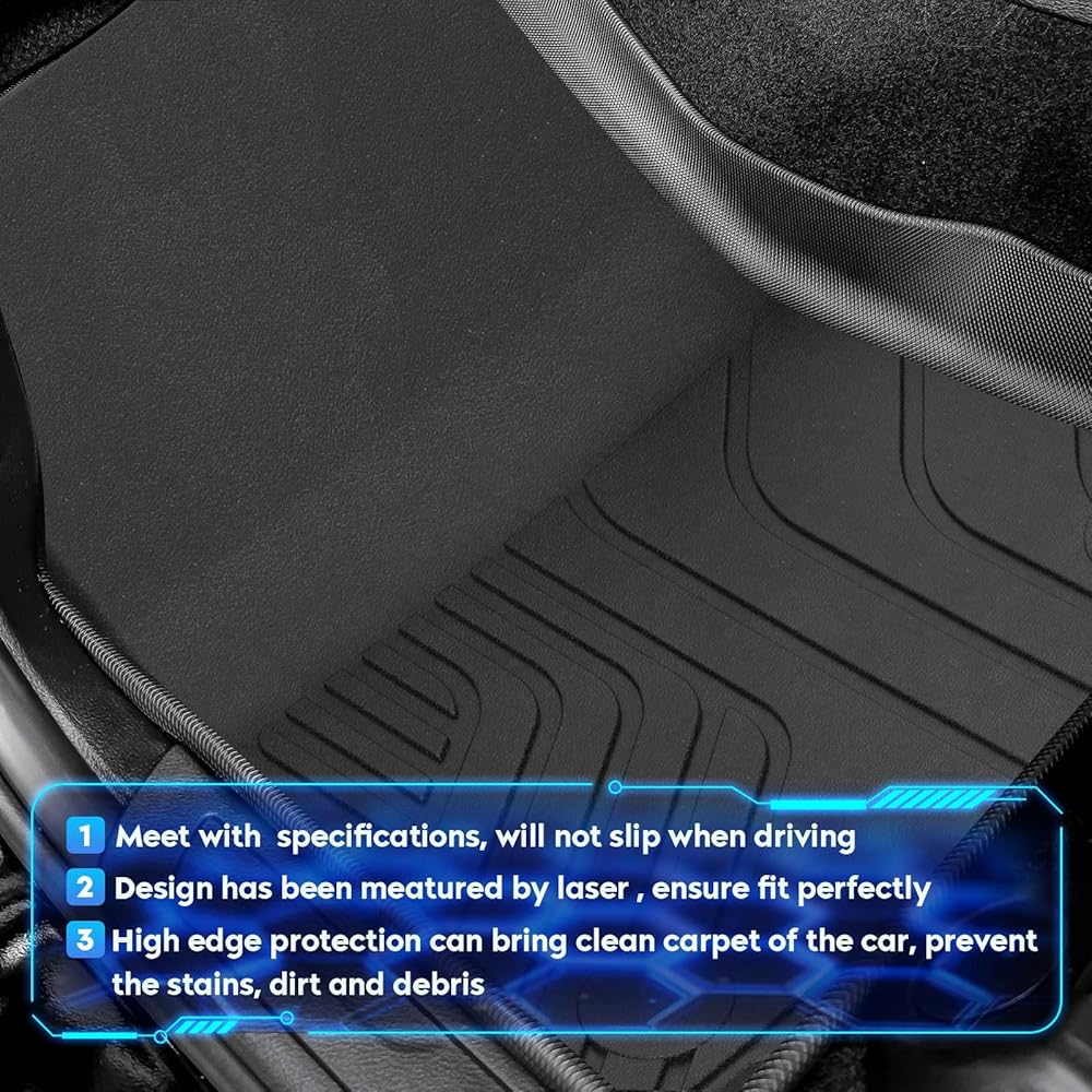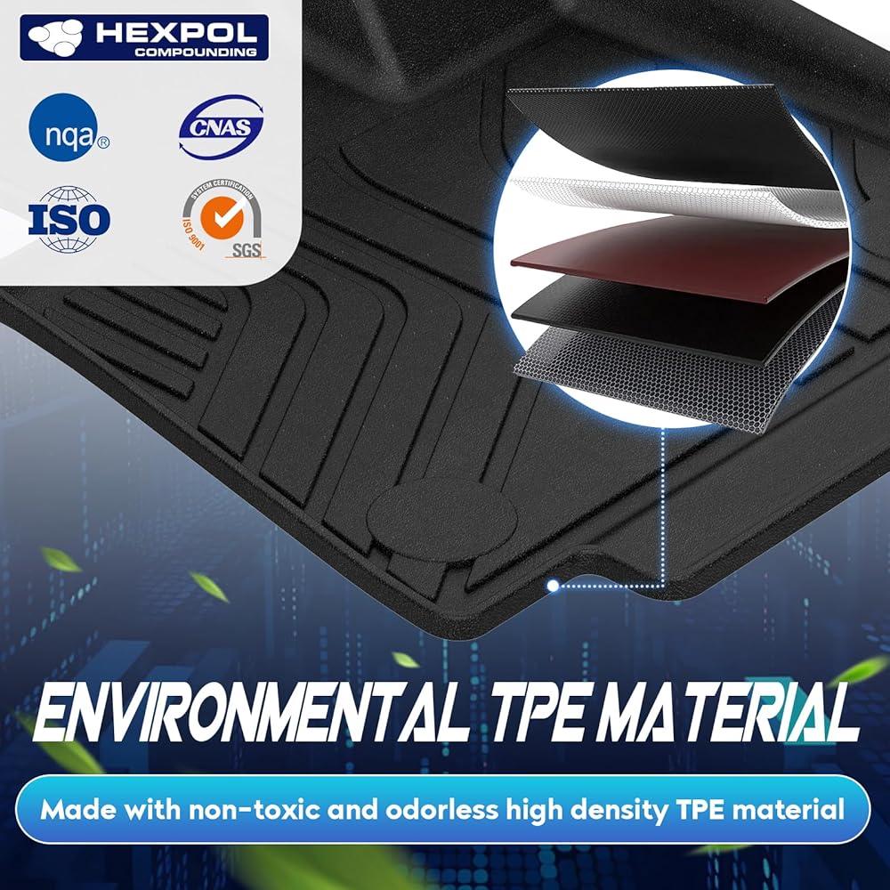 【Tough and Durable】Our floor mats and cargo tray are made from non-toxic, odorless TPE. The high-strength TPE material not only has good touch and weather, abrasion and temperature resistance, but also maintains flexibility.