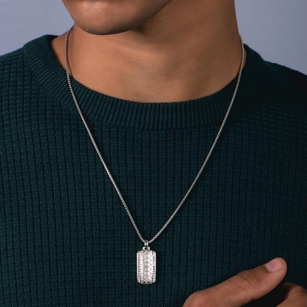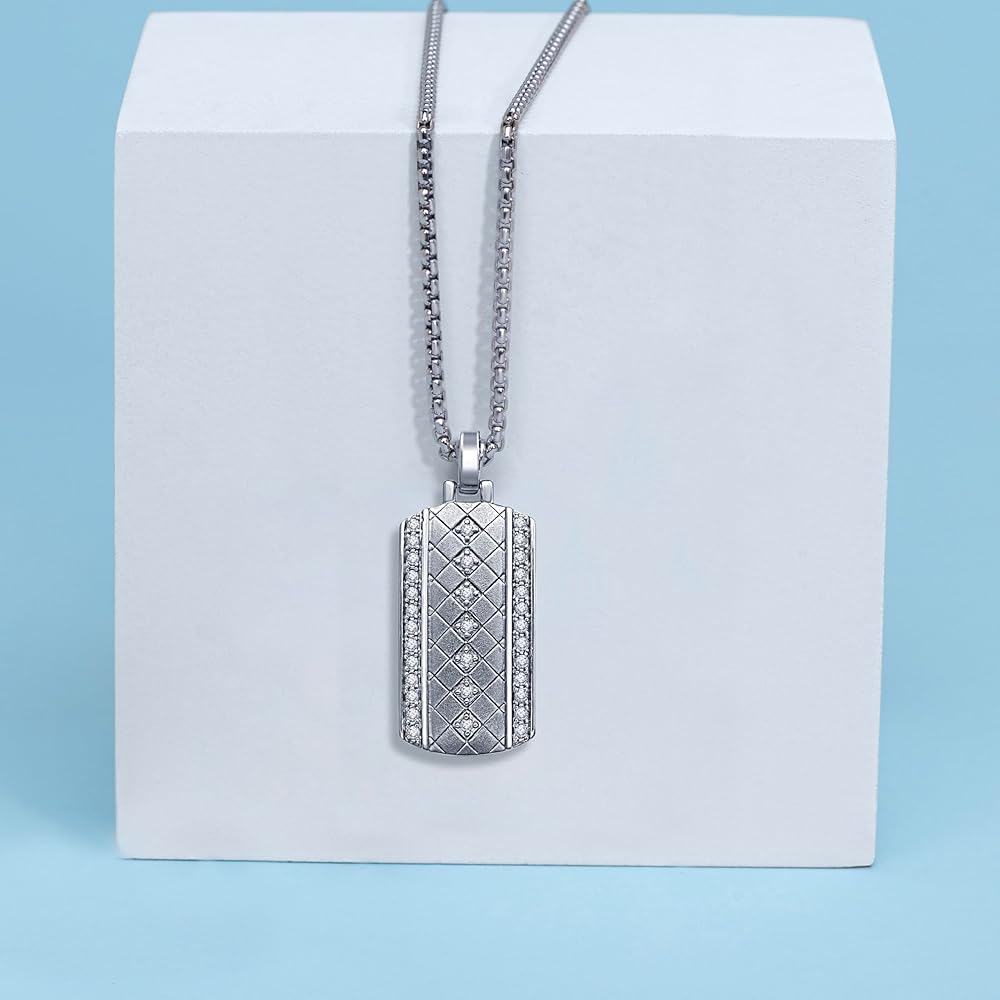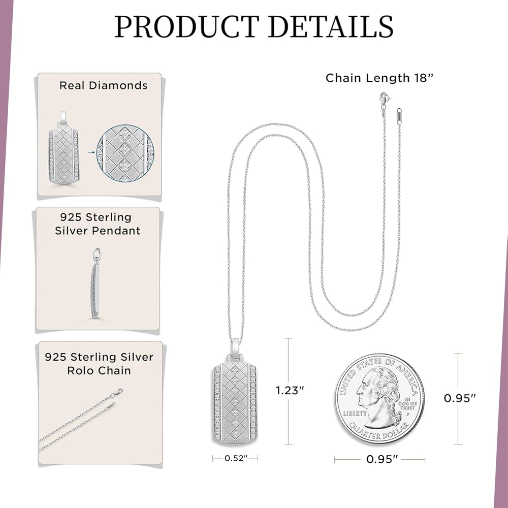 • تم تصميم قلادة علامة الكلب المزينة بالألماس للرجال من الذهب الأصفر عيار 14 قيراط فوق الفضة الإسترلينية 925. متألقة بـ 1/3 قيراط من الماس الأبيض الطبيعي المستدير ولمعان مصقول رائع، يبلغ طول هذه السلسلة 55.88 سم ويتم تثبيتها بمشبك.
