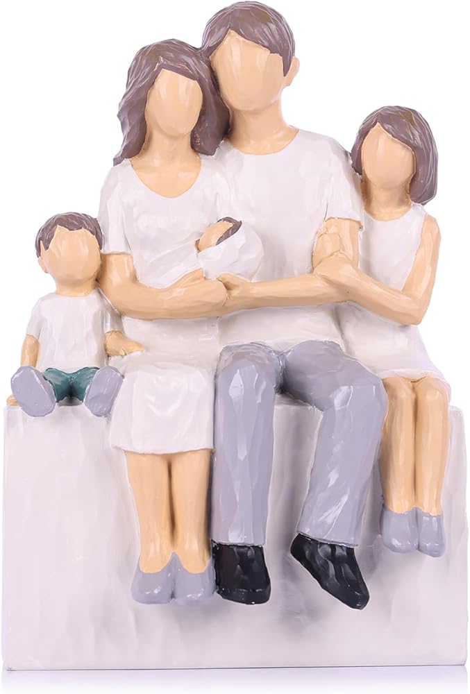 Heartwarming Family of 4 Figurine: Celebrate the beauty of family with this carefully crafted family of 4 sculpture. This figurine captures the warmth and love shared among Mom, Dad, Son, and Daughter, making it a perfect representation of familial bonds. The design highlights the joy of togetherness, making it an ideal centerpiece for any home that values the essence of family.