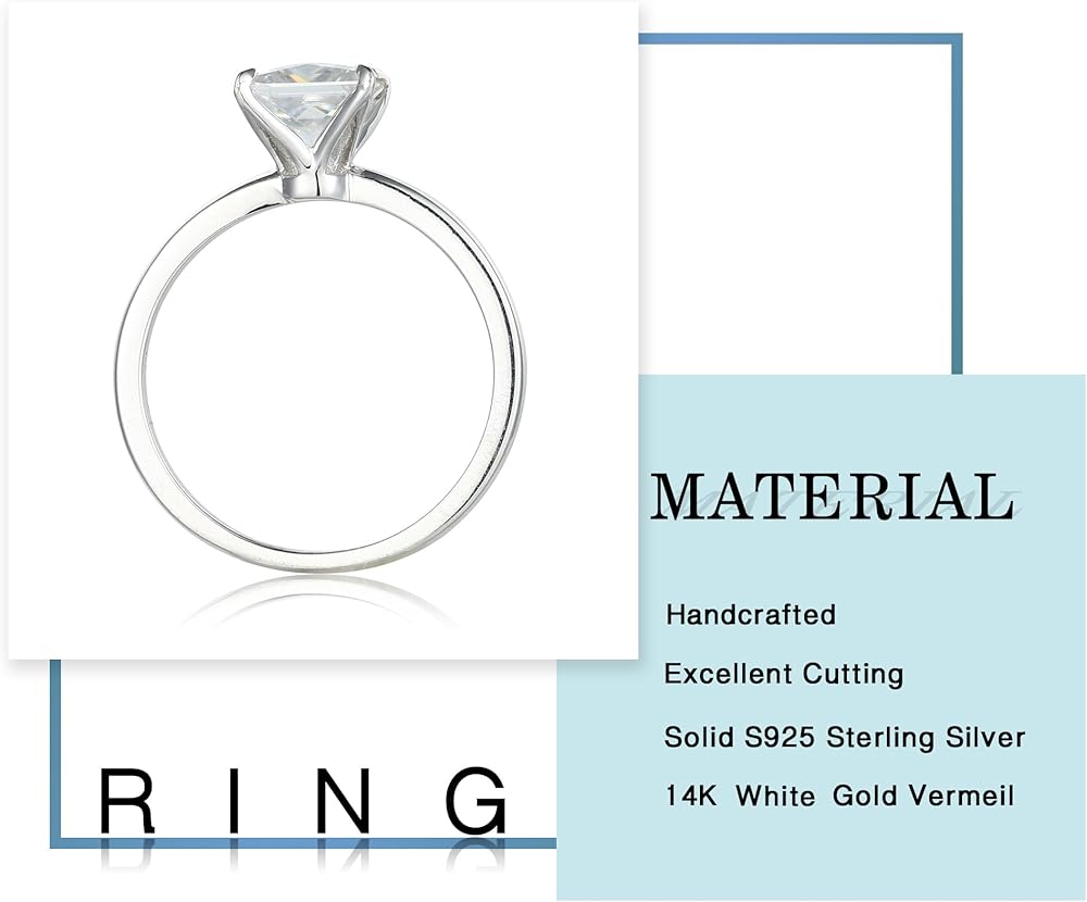 【EXQUISITE DESIGN】-MOOSEA Moissanite use advanced cutting technology in Europe. The moissanite is set by hand. Four strong eagle claws support the center stone to ensure a more stronger and safer. No need to worry about gems falling. The exquisite White gold plating process ensures color does not fade. Excellent polishing process will make the ring have much more fire and gloss. We have designed a variety of sizes for you to choose from, you could wear comfortable and not tight