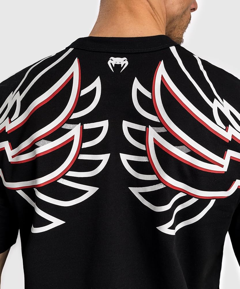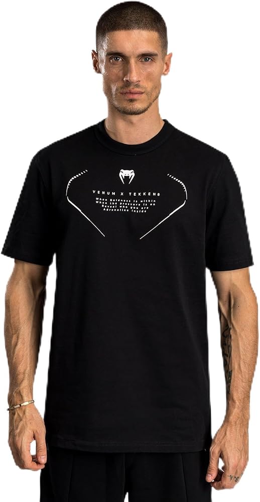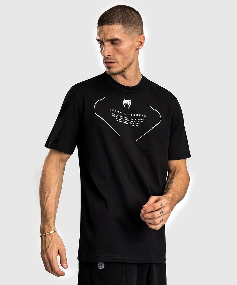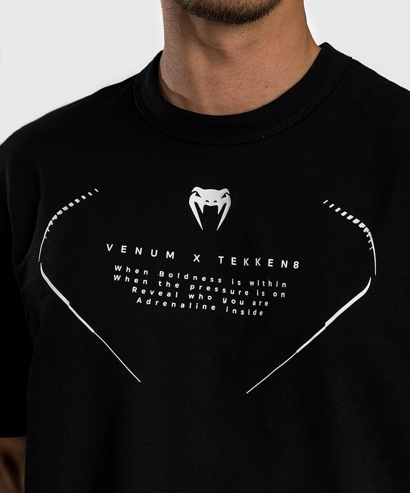 “Fist Meets Fate”: Venum x Tekken 8 is a performance and lifestyle apparel collection created to celebrate the release of Tekken 8, the latest chapter in the tragic saga of the Mishima bloodline and its world-shaking father-and-son grudge matches. Through this striking collection, featuring T-shirts, hoodies, rashguards, fight shorts, boxing gloves and more, gamers and athletes alike can channel fan-favorite characters, Jin, Marshall and Paul.The Venum x Tekken 8 Jin Kazama T-Shirt is dedicated to honorable Karate warrior Jin Kazama. This classic fit black tee features Jin's iconic angel wings across the back, with the Venum logo centered at the back of the neck. The text at the front of the shirt says, “When boldness is within / When the pressure is on / Reveal who you are / Adrenaline Inside.”The Venum x Tekken 8 Jin Kazama T-Shirt pairs perfectly with other items from the collection.