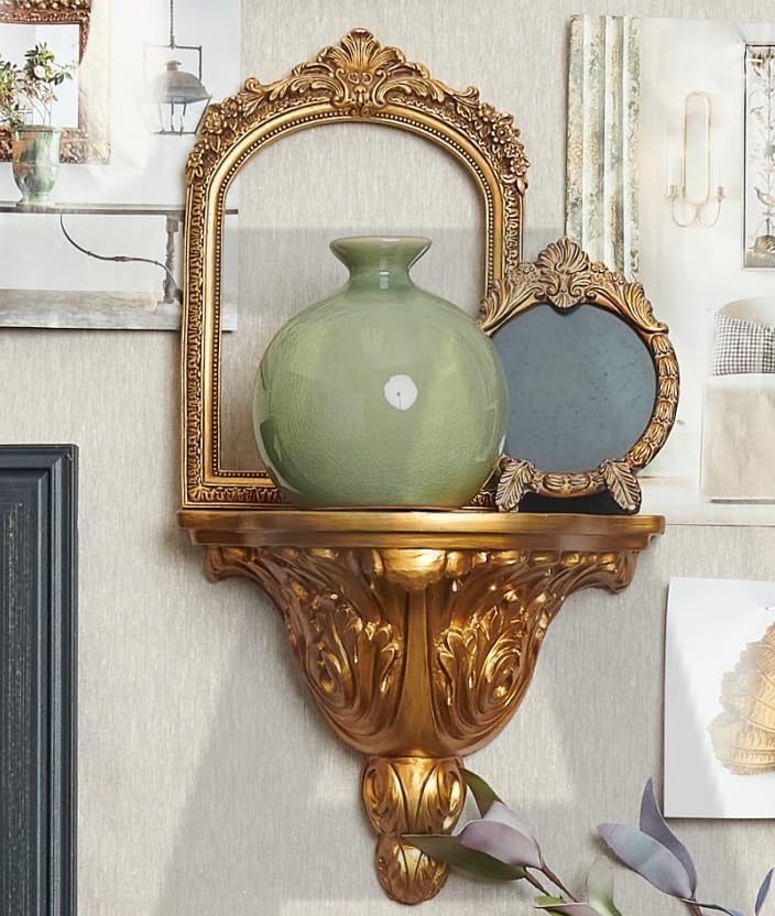 Elevate your home decor with the TenFuju Small Gold Vintage Mirror, featuring a stunning 11” x 9.5” size and an intricate baroque design. The antique gold resin frame gives this mirror a luxurious, vintage feel, making it an elegant addition to any bedroom, living room, or bathroom. Whether you choose to hang it on the wall or place it on a tabletop, this mirror enhances your space with both style and function. The clear, high-definition reflection makes it ideal for daily grooming or makeup routines, while the sturdy resin frame ensures long-term durability. A perfect gift for vintage decor enthusiasts, this gold mirror is an ideal choice for anyone who appreciates timeless beauty.