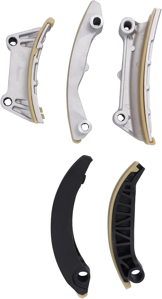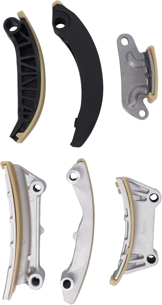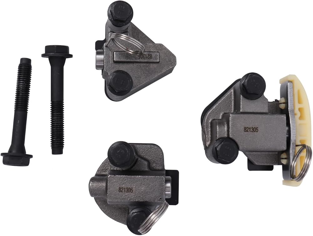 Timing chain set include: 1x Timing Chain (Primary 96 Link); 2 x Timing Chains (Secondary 114 Link); 3x Tensioner; 3x Sprocket; 4 x Guide Rail; Secondary Guide Rail (upper left and right - fixed)