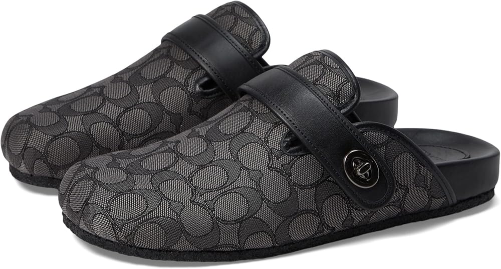 A comfortable choice for around the house or out on the town, these classic mens clogs feature signature jacquard and smooth leather details with our iconic turnlock closure for a heritage touch. These relaxed men's slides are finished with a contoured footbed and a durable rubber outsole for all day comfort.