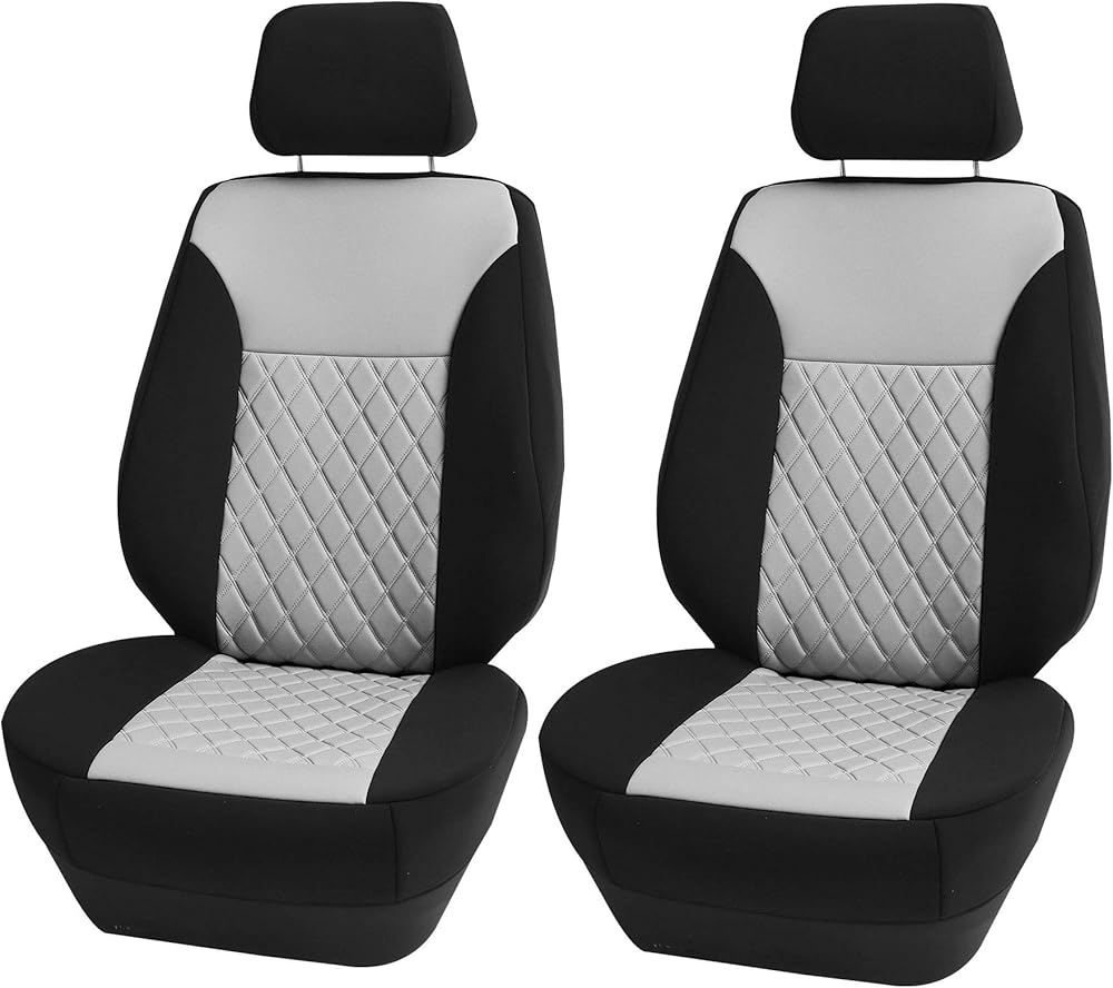 FH Group got you covered! Our premium neoprene car seat covers not only provide the best protection for your car's upholstery against any type of mess but they also enhance the looks of your car's interior. No need to worry anymore about spills, stains, mud, or anything damaging your original car seats because this car seat protector got your back. Every car seat cover we make is built with high-quality, durable materials that will protect your car's upholstery at all times. We offer automotive seat covers in numerous fabrics, colors, and designs, so you can easily find the seat cover for cars that fits your style the most. We have car seat covers for women, for men and for everyone. Our auto seat covers are compatible with most sedans, SUVs, and vans' front seats thanks to the universal low back seat cover design that delivers the snug fit you're looking for, only if the front seats' headrest is removable. Also, because safety is one of our main goals, this front set of cover for car seats is airbag compatible (officially tested!). We understand messes happen, that's why these waterproof seat covers for cars are convenient for any type of driver. FH Group car seat covers are a great car interior accessory for your vehicle. We have it all: car seat covers for SUV, car seat covers for sedan, car seat covers for vans, you name it!.