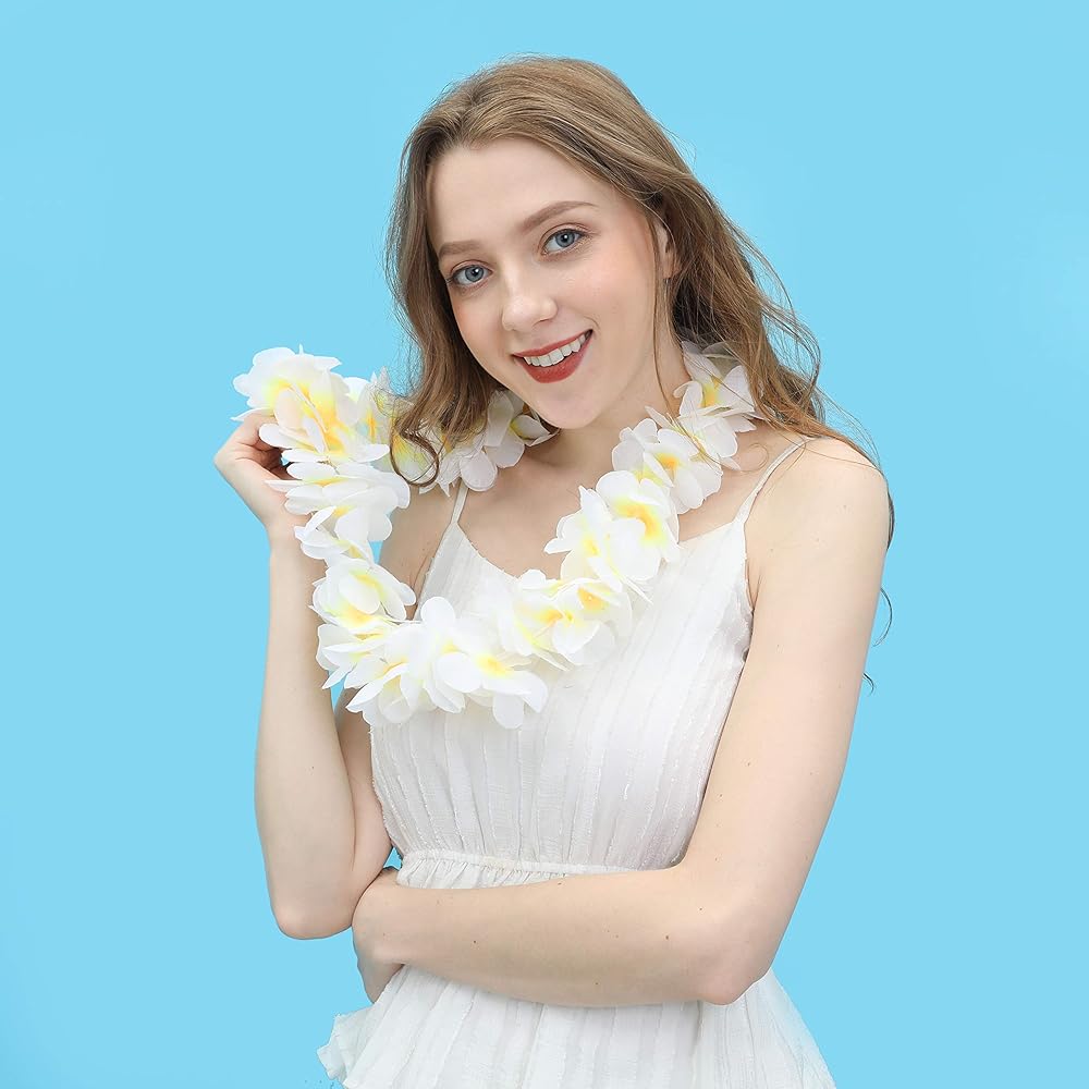Set the tone for your next tropical themed event with these ruffled flower petal leis necklaces.