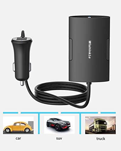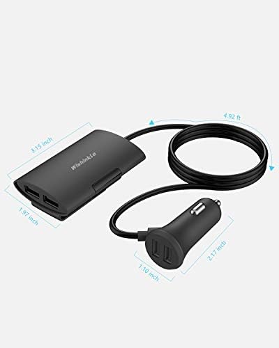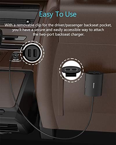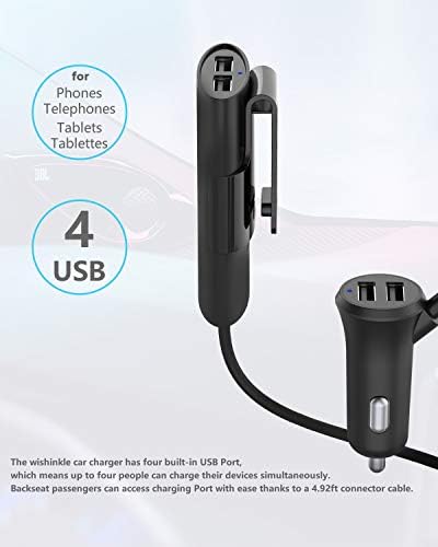 منافذ USB متعددة - يحتوي شاحن السيارة على 4 منافذ USB مصممة للعائلة الكبيرة. 2 للمقعد الأمامي و2 للمقعد الخلفي، مع مشبك قابل للإزالة وكابل توصيل بطول 5 أقدام يسمح للسائق والراكب بالحصول على طريقة آمنة وسهلة الوصول لتوصيل شاحن المقعد الخلفي ثنائي المنفذ.