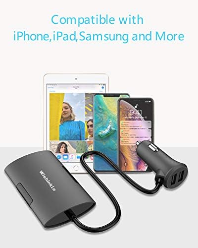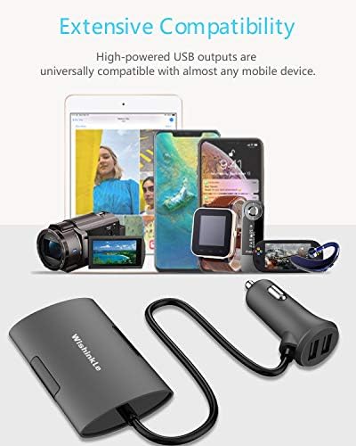 عملي ومتنوع - أربعة منافذ USB مدمجة تدعم أربعة أشخاص لشحن أجهزتهم في وقت واحد، وشاحن السيارة USB متوافق مع أي أجهزة محمولة تعمل بنظام Android وiPhone، مثل الهواتف الذكية، وGalaxy، وPad، وأجهزة Android اللوحية، وبنك الطاقة، وأجهزة التحكم في ألعاب الفيديو، والرياضة الساعة والكاميرا وغيرها من الأجهزة التي تعمل بالطاقة USB.
