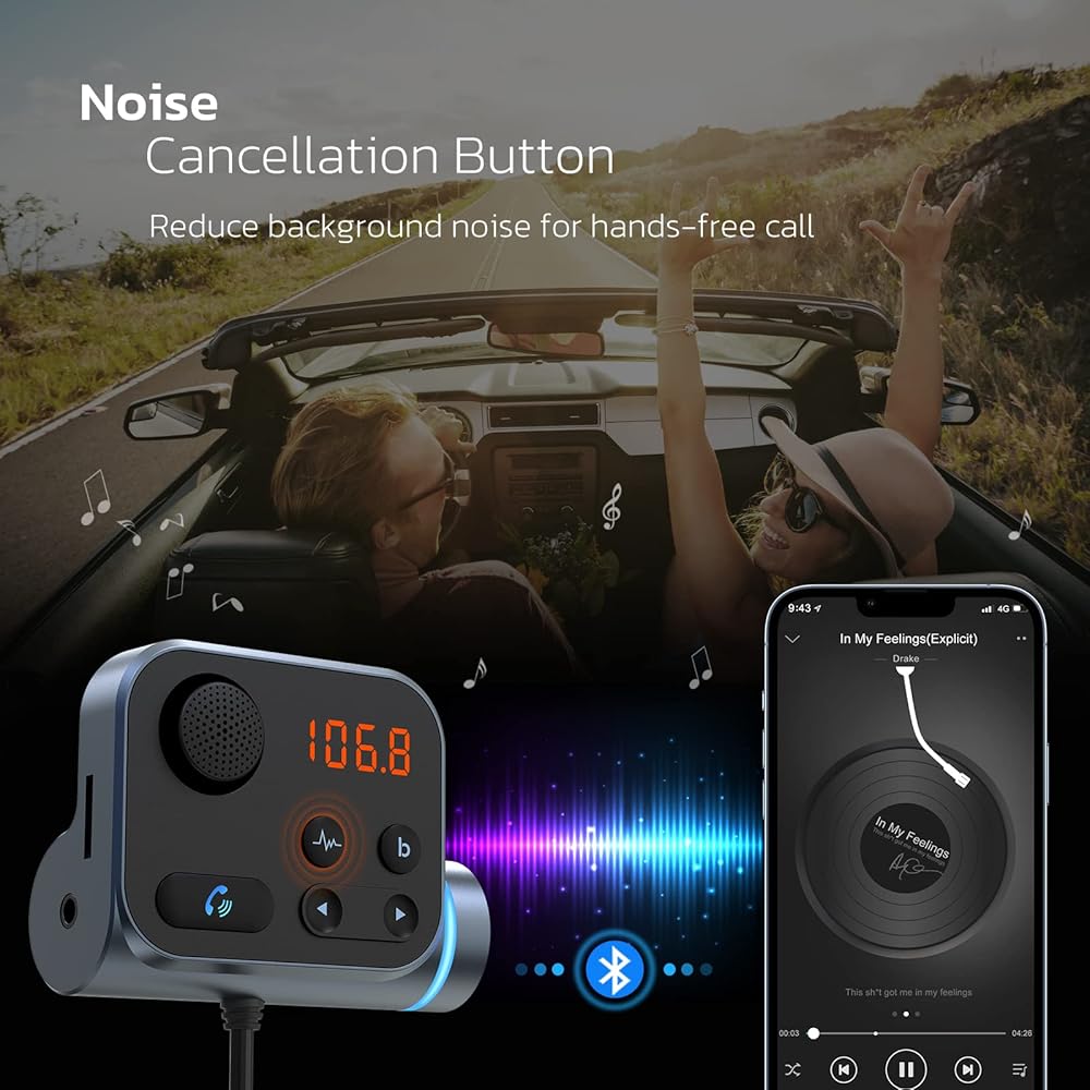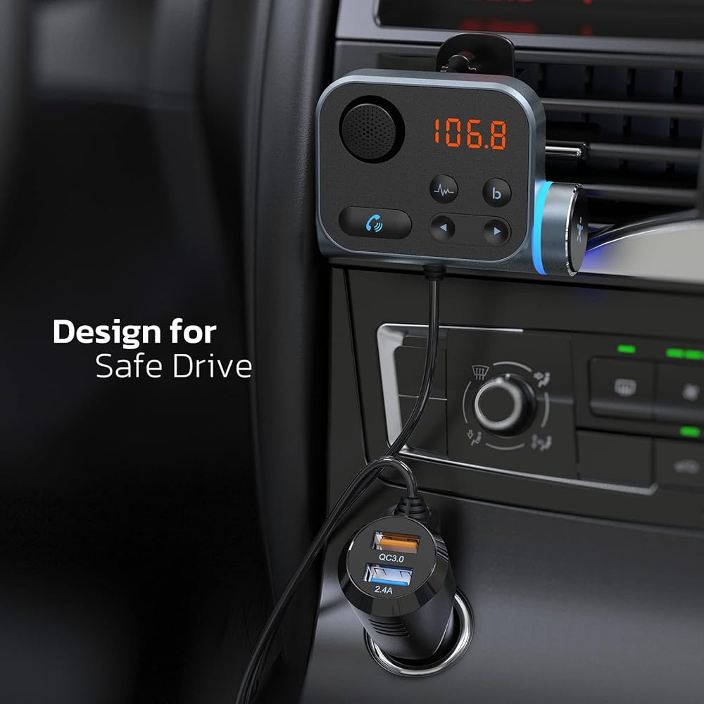 【شحن أسرع وأسرع】يحتوي جهاز إرسال FM بلوتوث Nulaxy للسيارة على منافذ شحن مزدوجة (بما في ذلك QC3.0 و2.4A)، ويدعم جهازين في وقت واحد. بالإضافة إلى ذلك، يمكنك توفير وقتك بشكل كبير عن طريق الشحن من خلال منفذ QC3.0، والذي يمكن شحنه بشكل أسرع أربع مرات من ذي قبل.