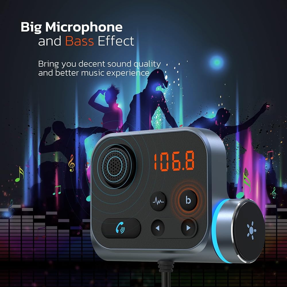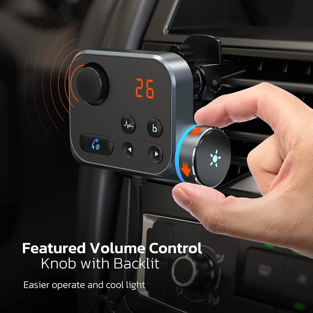 【مقبض التحكم في مستوى الصوت بإضاءة خلفية】على الجانب الأيمن من سيارة إرسال البلوتوث Nulaxy km21، يوجد مقبض كبير للتحكم في مستوى الصوت بإضاءة خلفية. تم تصميم مقبض التحكم في مستوى الصوت هذا خصيصًا لتسهيل التشغيل، مما يُعزى إلى قيادتك الآمنة. بالإضافة إلى الإضاءة الخلفية الرائعة، مما يساعدك على العثور بسهولة على سيارة جهاز إرسال بلوتوث FM حتى في الظلام. ****ملاحظة: يرجى ضبط مستوى صوت جهاز الإرسال ومستوى صوت السيارة. لن ينجح ضبط أحد وحدات التخزين فقط.