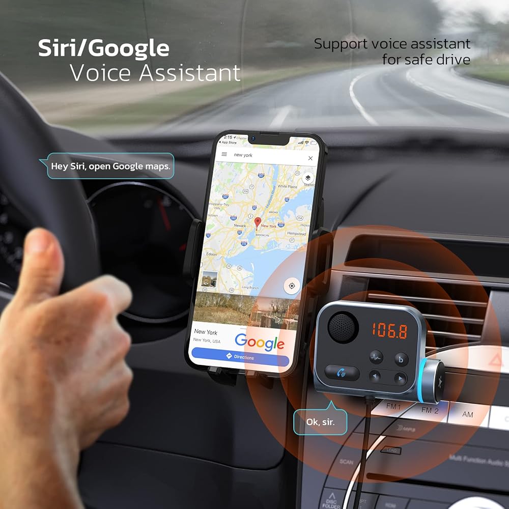 مساعد صوتي: تم تجهيز محول السيارة بلوتوث Nulaxy KM21 بمشبك فتحة تهوية، مما يتيح لك ربط جهاز إرسال FM بفتحة التهوية، حتى تتمكن من النظر إلى شاشة العرض مباشرة بدلاً من خفض رأسك إلى ولاعة السجائر. بالإضافة إلى ذلك، يدعم جهاز إرسال FM بلوتوث KM21 الخدمات الصوتية الذكية، مما يوفر لك التحكم الصوتي لقيادة أكثر أمانًا.