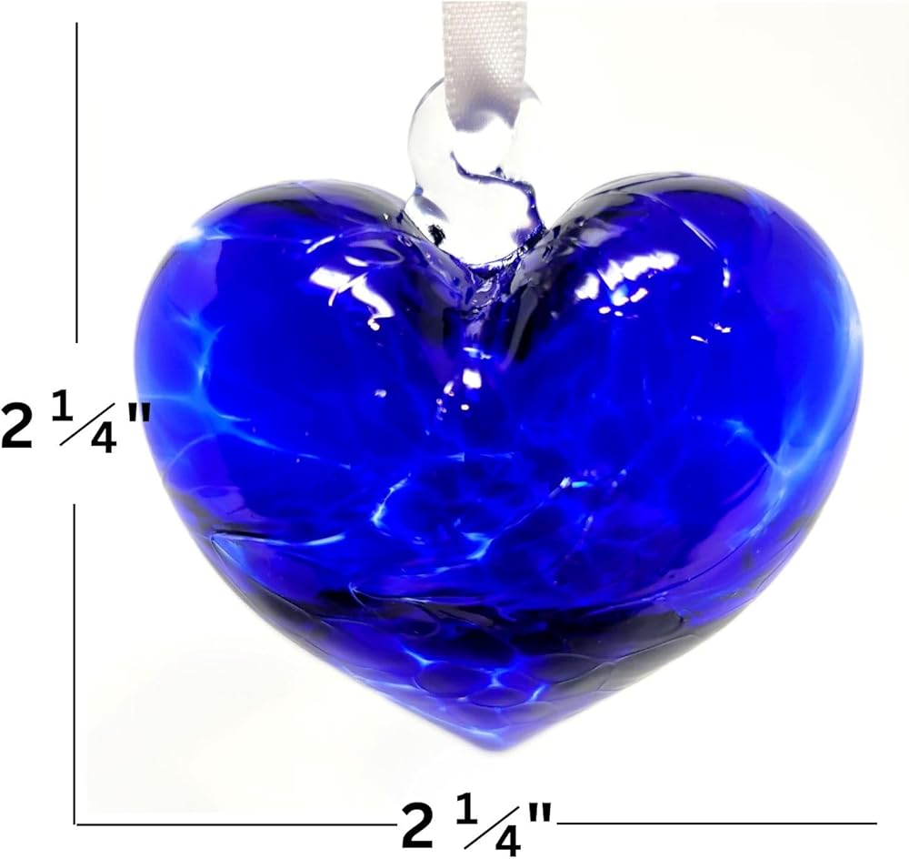 Beautiful small glass heart is hand made and blown by mouth using recycled glass making each glass ornament completely unique. Comes with a satin ribbons to hang your globe from. Unique and perfect gift for a special friend.