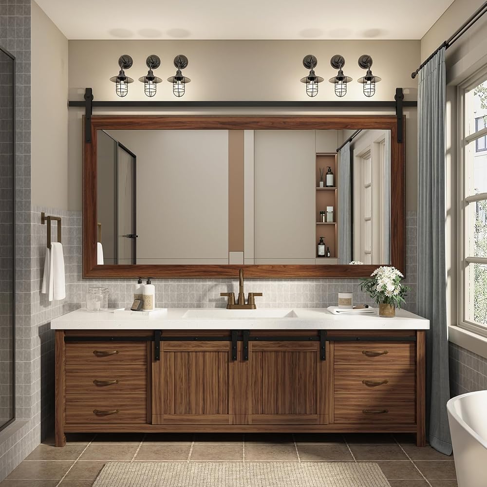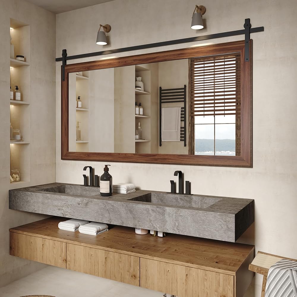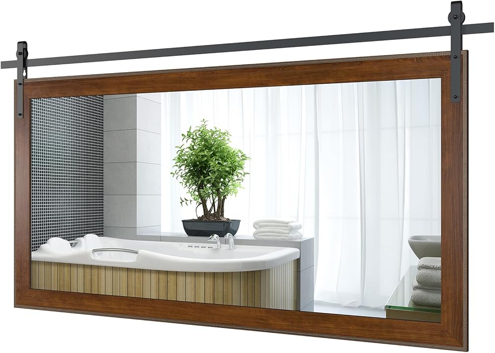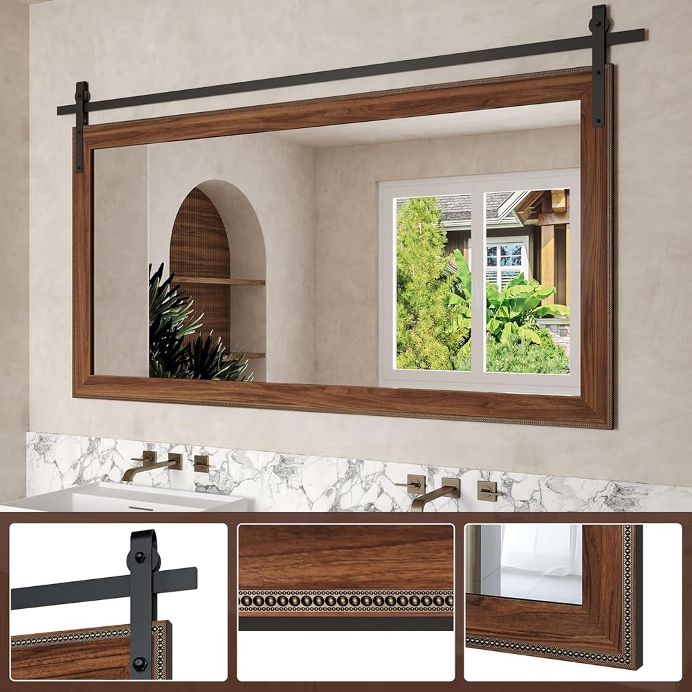 lovmor 77 × 42 بوصة مرآة مزرعة للحمام إطار خشبي ديكور مستطيل باب الحظيرة مرآة ديكور المنزل مرآة الحائط ريفي لغرفة النوم غرفة المعيشة مدخل