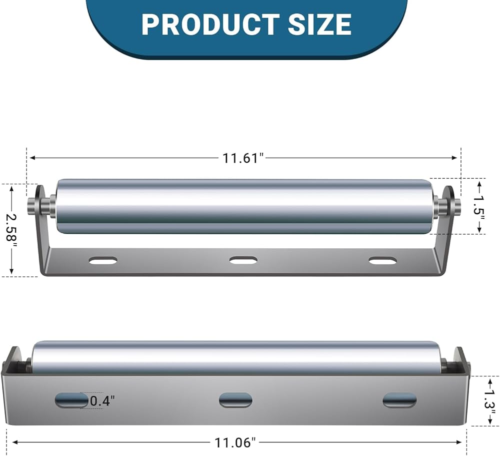 Efficient Sliding Performance: Roller and bracket are 1.5" in diameter and 10" in length, and are made of durable metal materials to withstand the rigors of continuous use while remaining quiet and low vibration, ensuring efficient and smooth operation. Roller and bracket set easily slides bulk materials, bulk products, and inventory, reducing your labor intensity and ensuring long-term reliability and performance.