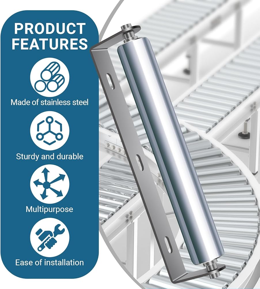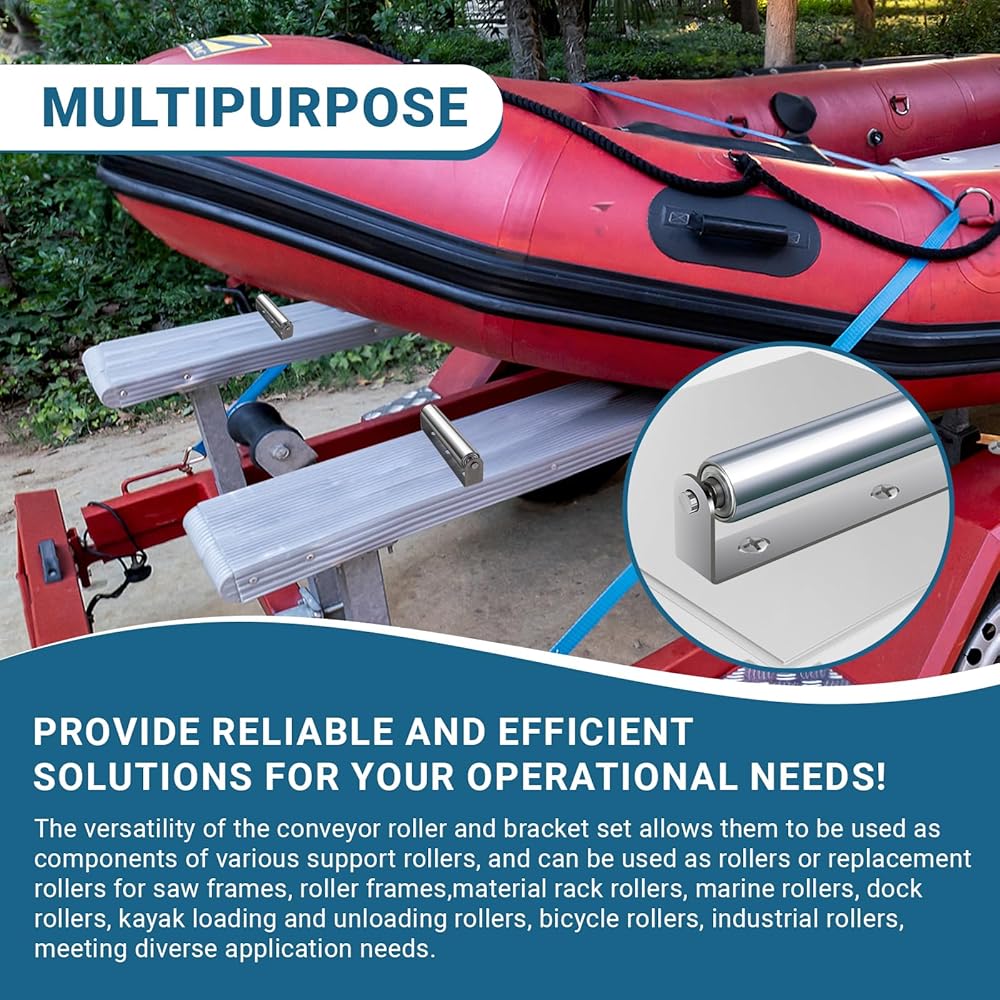 Enhanced safety and versatility: The smooth gliding of the roller and bracket set reduces the risk of accidents during operation and is suitable for home and commercial environments. The versatility of the conveyor roller and bracket set allows them to be used as components of various support rollers, and can be used as rollers or replacement rollers for saw frames, roller frames, material rack rollers, marine rollers, dock rollers, kayak loading and unloading rollers, bicycle rollers, industrial rollers, meeting diverse application needs.