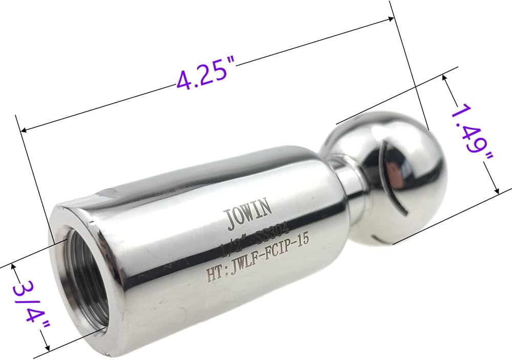 كرة رش JOWIN دوارة 360 درجة CIP أنثى NPT 1/2 "SS304 فوهة تنظيف دوارة من الفولاذ المقاوم للصدأ (1/2")