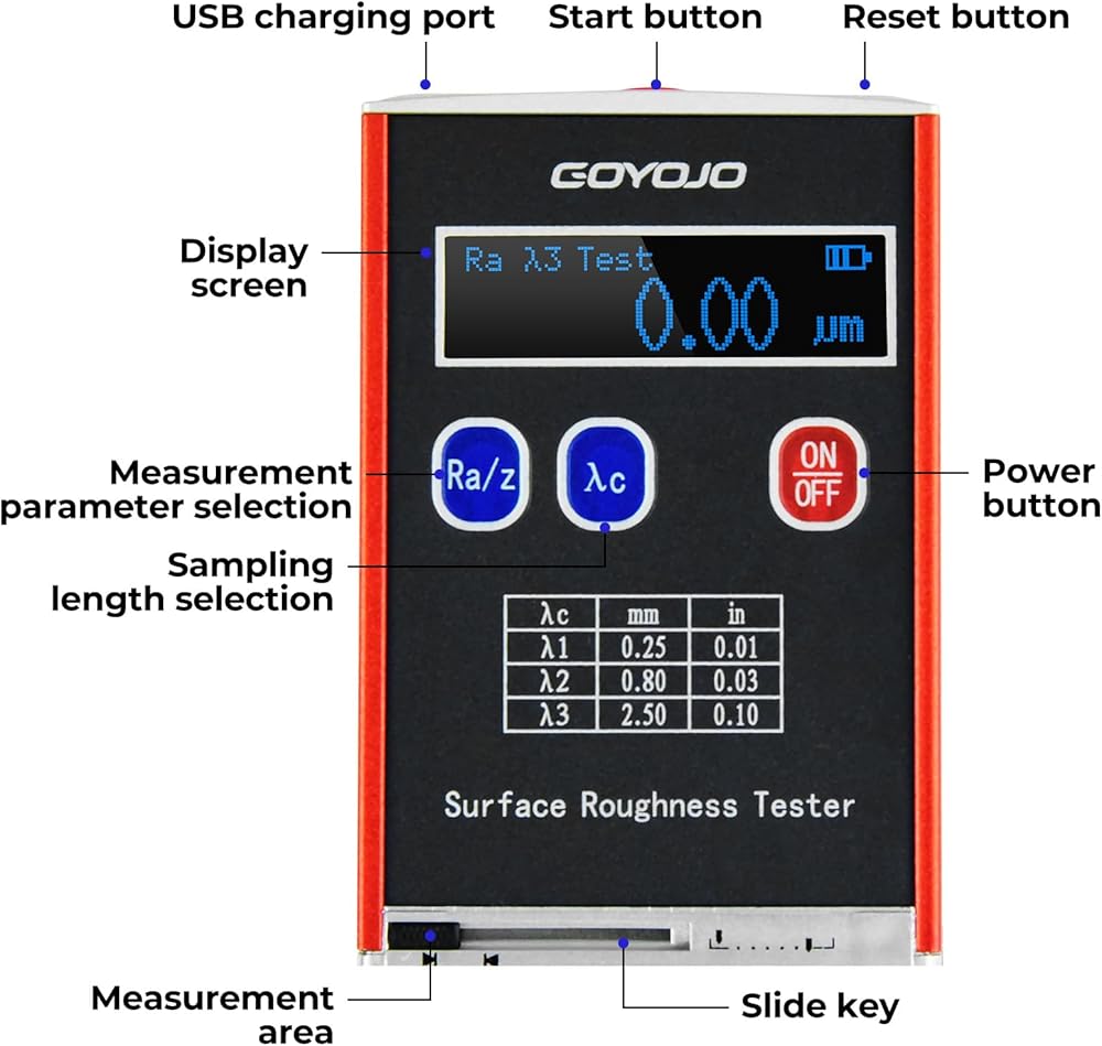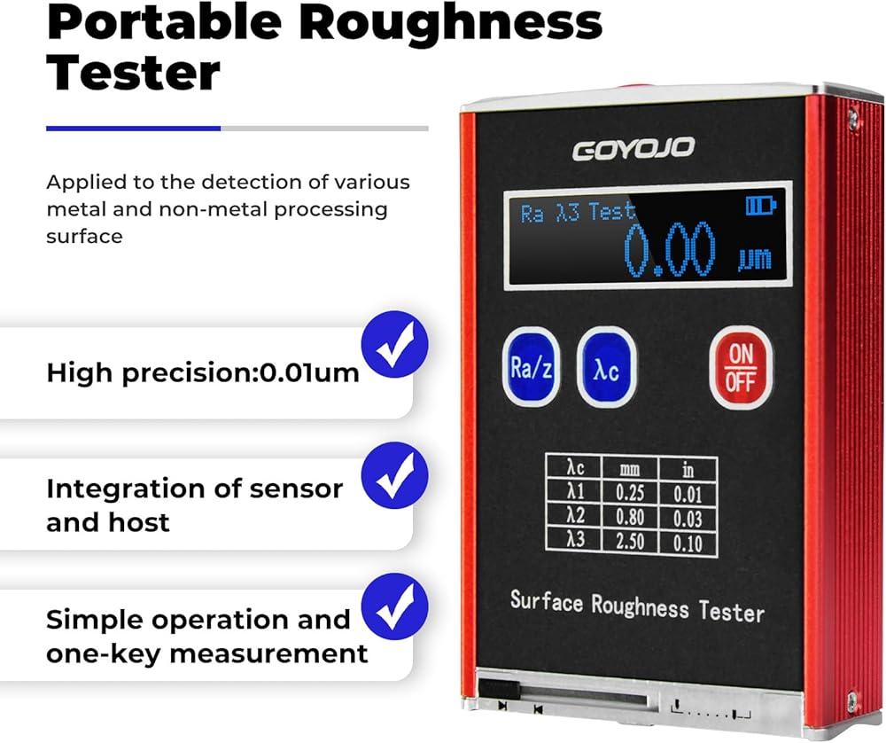 GOYOJO Surface Roughness Gauge offers comprehensive testing parameters, versatile measurement capabilities, and convenient operation, making it a valuable tool for a wide range of applications.