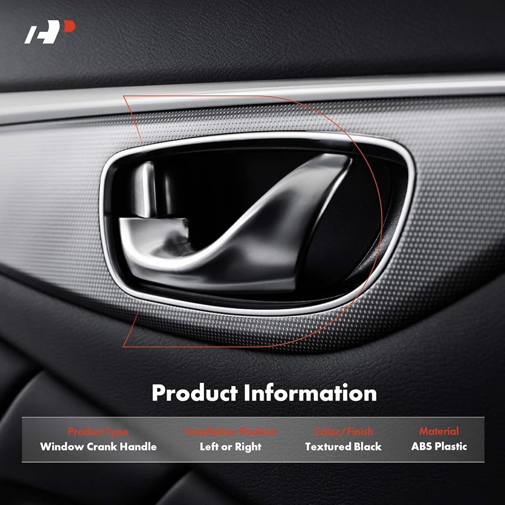 [المواصفات]: ① تتضمن العبوة: 1x مقبض كرنك للنافذة الجانبية للسائق أو الراكب؛ ② اللون/اللمسة النهائية: أسود مزخرف؛ ③ المادة: بلاستيك؛ ④ الحالة: جديد؛ ⑤ نوع الإعداد: استبدال مباشر