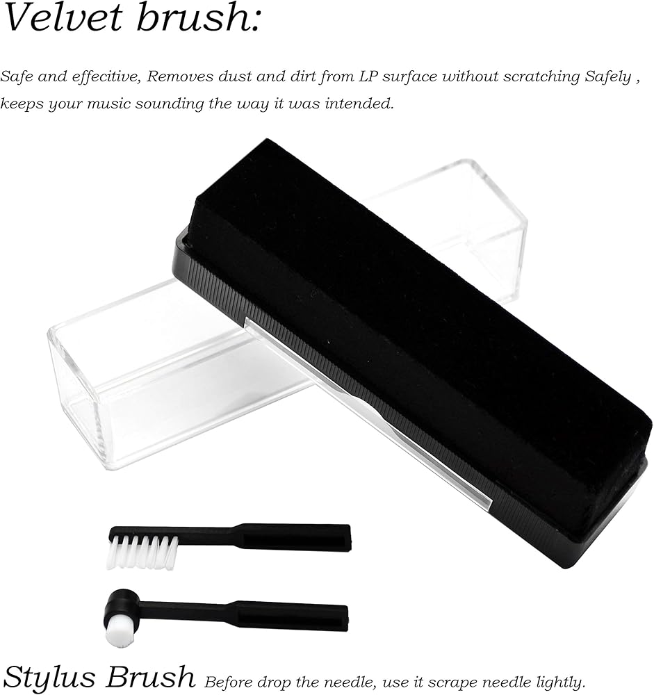 حل الكل في واحد: نظف الغبار والأوساخ وبصمات الأصابع باستخدام فرشاة مخملية مضادة للكهرباء الساكنة مع بخاخ التنظيف. ستزيل فرشاة القلم المرفقة أي جزيئات من إبرة مشغل التسجيل. فكرنا حقًا في كل شيء.