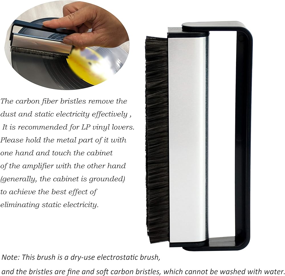 💚 إزالة الغبار والأوساخ بأمان، والحفاظ على سجل جديد: قماش الألياف الدقيقة وفرشاة ألياف الكربون المضادة للكهرباء الساكنة جيدة في تنظيف السطح الخفيف، صفين من شعيرات ألياف الكربون الفاخرة تزيل الغبار والأوساخ من سطح الفينيل بفعالية.
