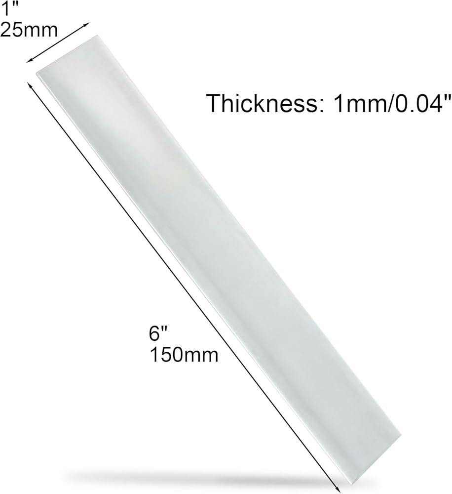حوالي 6 بوصات طول، 1 بوصة عرض و0.04 بوصة سمك