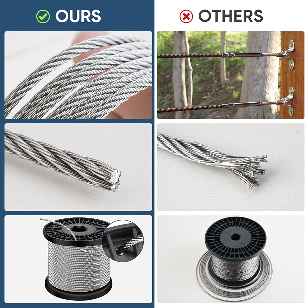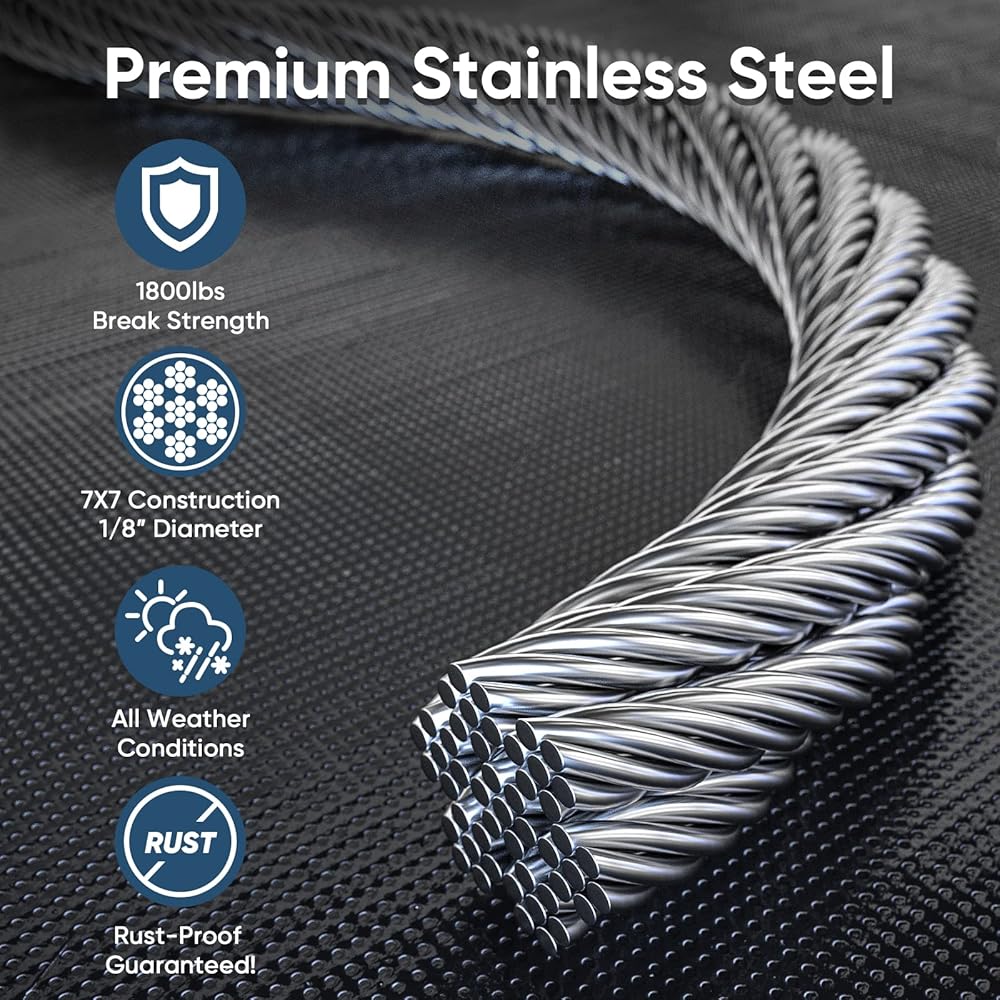 [الفولاذ المقاوم للصدأ الفاخر] سلك الكابل الفاخر المصنوع من الفولاذ المقاوم للصدأ مقاوم للتآكل والصدأ. إنها مصنوعة للخدمة الشاقة مع قوة سحب تبلغ 1460 رطلاً وقوة كسر تبلغ 1800 رطلاً