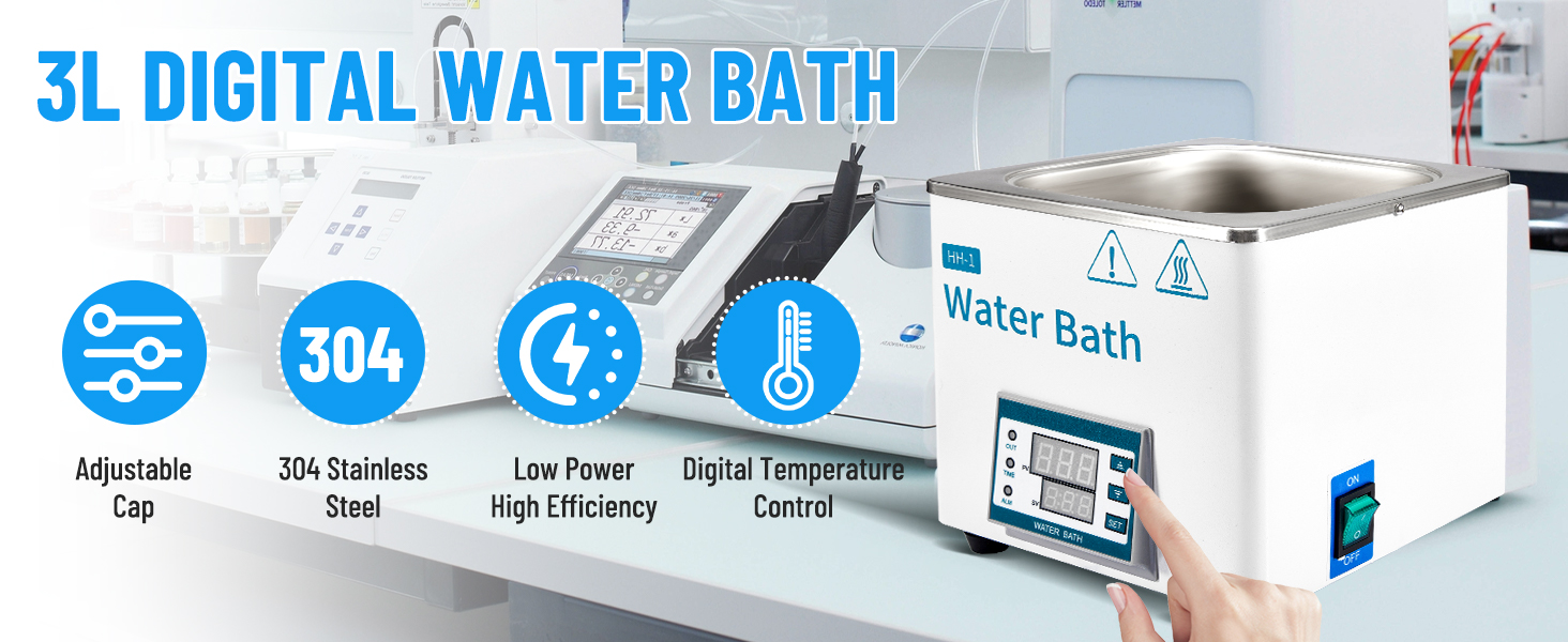 التحكم الدقيق في درجة الحرارة: يمتد نطاق التحكم في درجة الحرارة من درجة حرارة الغرفة إلى 99.9 درجة مئوية، بدقة ±0.5 درجة مئوية. بفضل التحكم الرقمي الذكي في درجة الحرارة، يضمن هذا الحمام المائي تنظيمًا دقيقًا لدرجة الحرارة