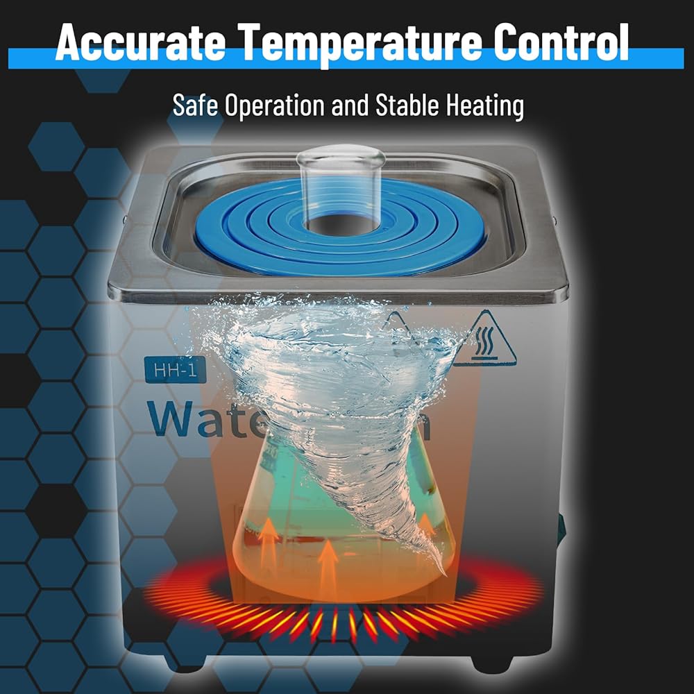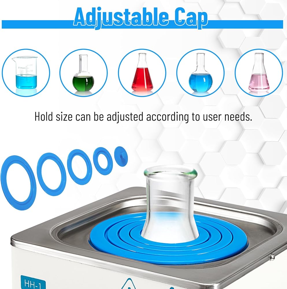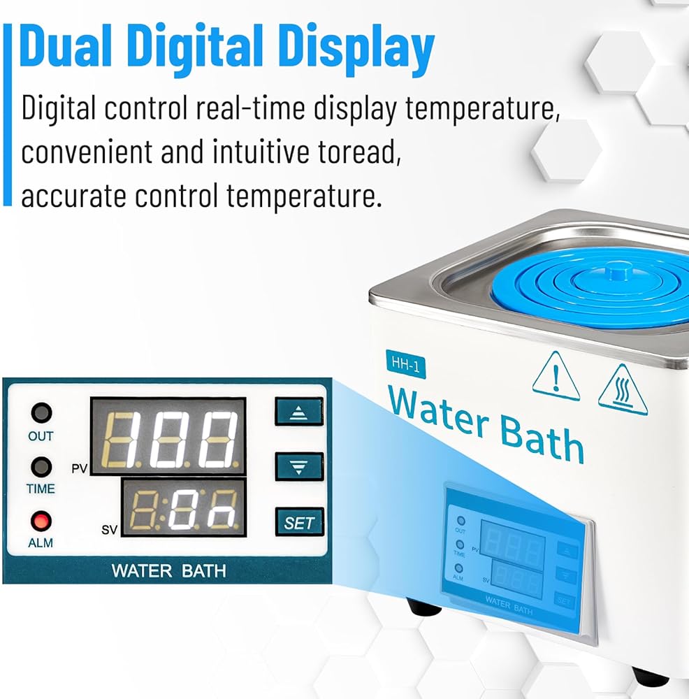 شاشة رقمية مزدوجة: حمام الماء HH-1 يسمح لك بمراقبة درجة الحرارة المحددة ودرجة الحرارة الفعلية في وقت واحد. توفر هذه الميزة الراحة وسهولة الاستخدام، مما يتيح لك الحفاظ على ظروف درجة الحرارة المثالية