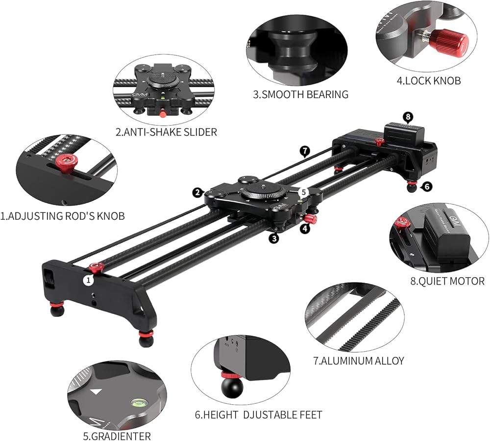 شريط تمرير كاميرا GVM الآلي ، 31 "لاسلكي ألياف الكربون الكاميرا Dolly Camail Camera مع التحكم في التطبيق ، والفاصل الزمنية الآلية وتصوير الفيديو متابعة FOCUS