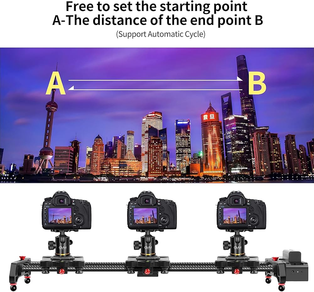 يمكن لشريط تمرير الكاميرا GVM المزود بمحرك أن يدعم اللقطة التالية أو المنظر، واللقطة الشاملة، والتصوير البانورامي بزاوية 120 درجة، والفاصل الزمني، والتقاط الفيديو، وتعيين نقطة البداية ونقطة النهاية مجانًا. قم بتعيين العديد من الإطارات الرئيسية حسب حاجتك، وسرعة شريط التمرير، وعدد الصور ، توقف الوقت، تأخير الوقت الخ.