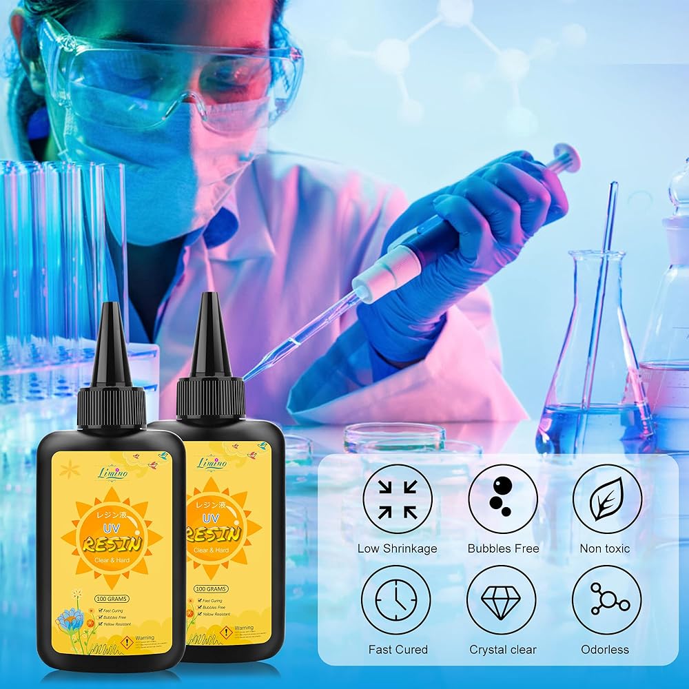 مريح وفعال - راتينج الأشعة فوق البنفسجية الخاص بنا جاهز للاستخدام ويمكن معالجته على الفور في دقائق باستخدام ضوء الأشعة فوق البنفسجية بقوة 36 وات. قبل الاستخدام، قم بتجربة كمية صغيرة لاكتساب المهارات والتقنيات اللازمة. لا تلمس بيديك مباشرة بعد التعرض للأشعة فوق البنفسجية لتجنب الحروق وبصمات الأصابع.