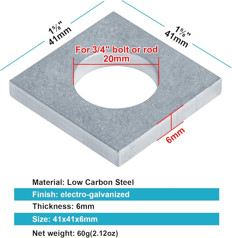 6 قطع من ألواح الغسالة المربعة مقاس 1-5/8 بوصة لقناة الدعامة، تناسب مسمار مقاس 3/4 بوصة، من الفولاذ المجلفن