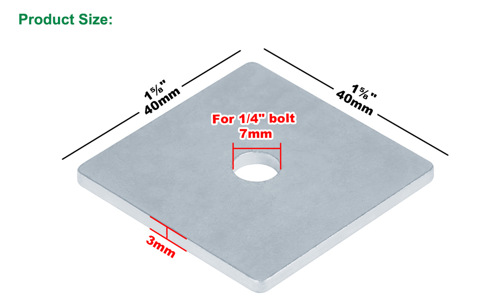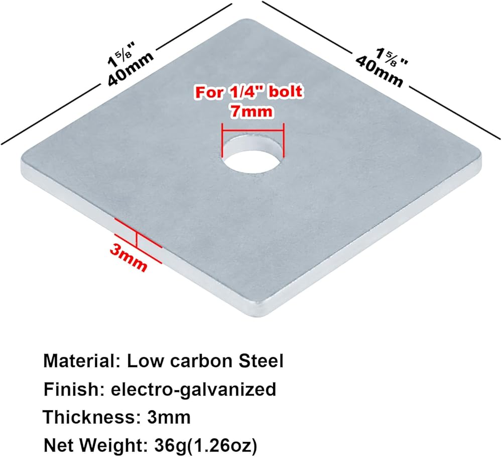 GBGS 20 قطعة 1-5/8 بوصة × 1-5/8 غسالة أطباق مربعة، تقبل مسمار 1/4 بوصة، غسالة مسطحة سميكة 1/8 بوصة
