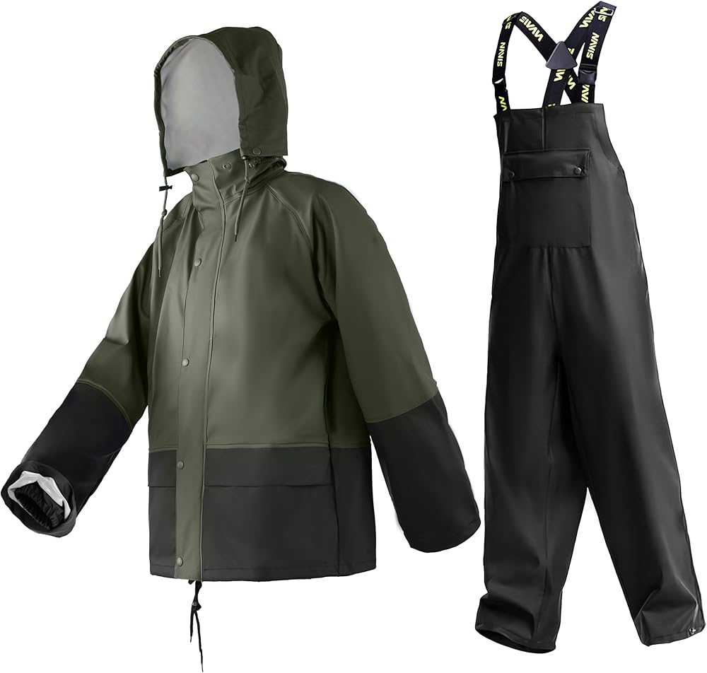 بدلة مطر احترافية للرجال - سترة مقاومة للماء وسروال مريلة مكون من 3 قطع لتوفير أقصى درجات الأمان والراحة in Kuwait