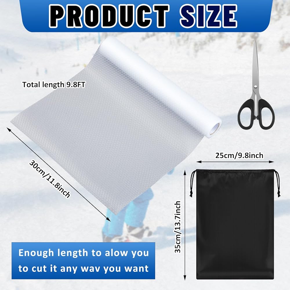 Bucherry 1 لفة من جلود التزلج الشتوية الشفافة لوح التزلج شبكة واقية قابلة للقطع على الجليد شبكة حماية من الجلد مع مقص كبير وحقيبة تخزين لتسلق الجلد وجلود التزلج شبكة لمنع الثلج والجليد