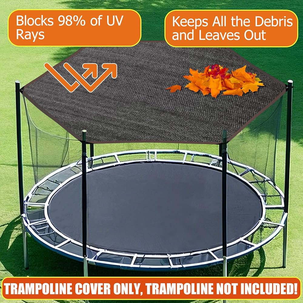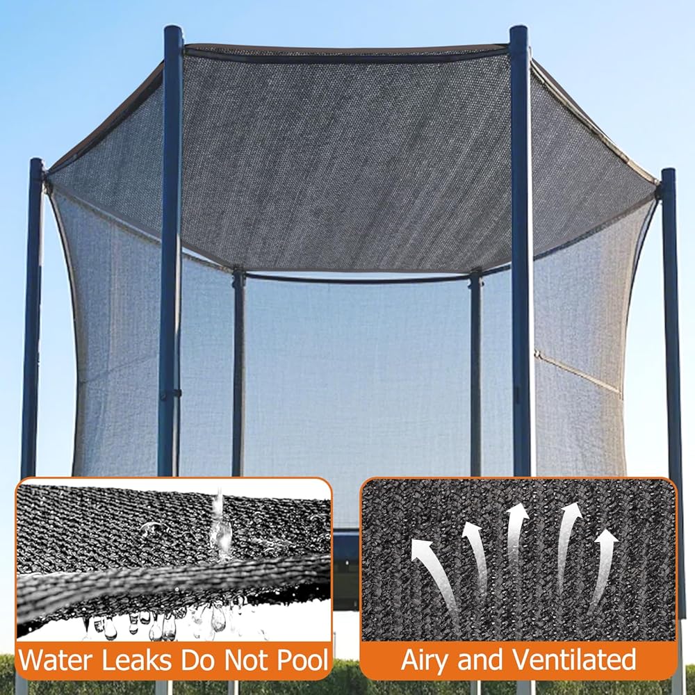 【حماية من الأشعة فوق البنفسجية وتظليل عالي】-- ليس غطاء ظل كامل تقليدي، يتميز غطاء الترامبولين العلوي هذا بشبكة دقيقة مقاومة للأشعة فوق البنفسجية لتوفر لك دوران الهواء على الترامبولين الخارجي. لا يتدهور بسهولة، ويحجب أشعة الشمس القاسية ويمنع بقايا الأشجار وأوراق الشجر من السقوط على الترامبولين.