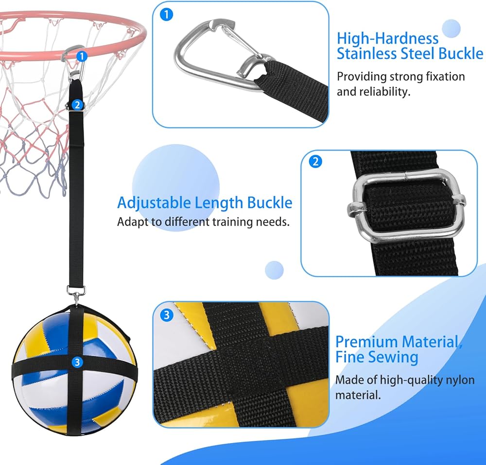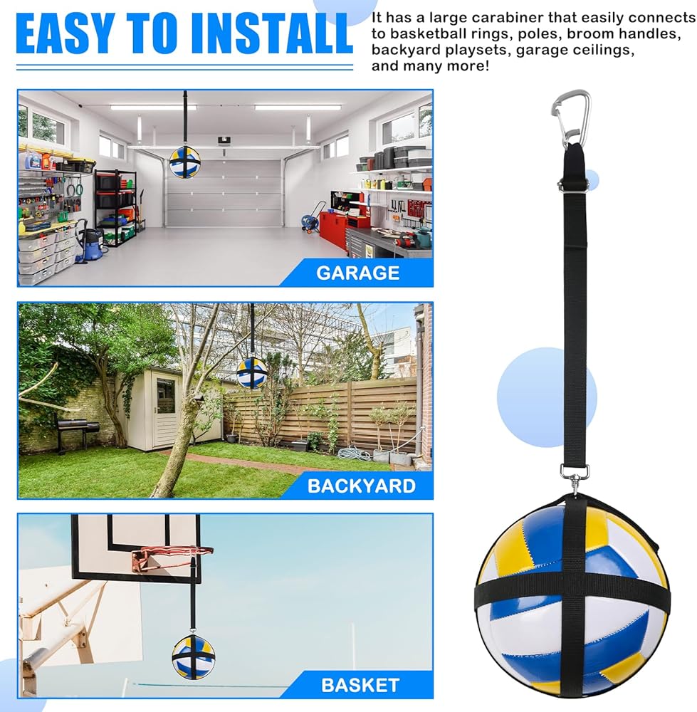 • [تدريب مريح في أي مكان]: سواء في المنزل أو أثناء التنقل، يمكن إعداد نظام تدريب الكرة الطائرة متعدد الاستخدامات بسهولة على أطواق كرة السلة والأعمدة ومقابض المكنسة وأسقف المرآب والمزيد. استمتع بجلسات تدريبية مرنة تناسب جدولك الزمني وموقعك.