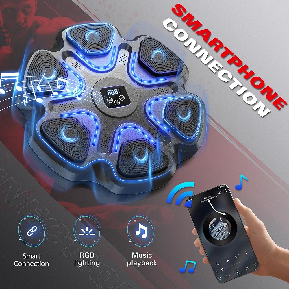 آلة ملاكمة موسيقية مع قفازات للبالغين، آلة ملاكمة مثبتة على الحائط، معدات ملاكمة بلوتوث ذكية للمنزل وصالة الألعاب الرياضية، آلة تدريب مع مثبت إلكتروني على الحائط